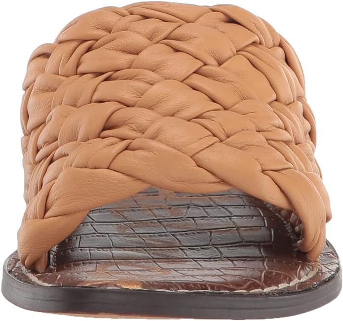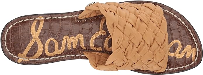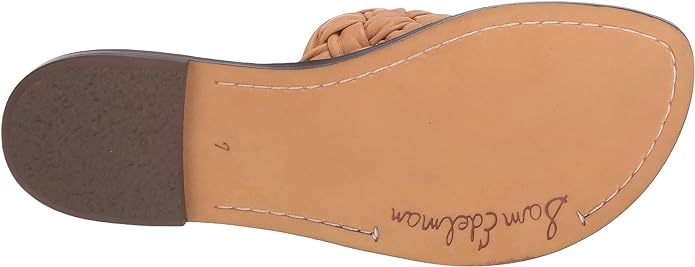 Sam Edelman Griffin Natural Sand Leather Rounded Open Toe Slip On Flats Sandals