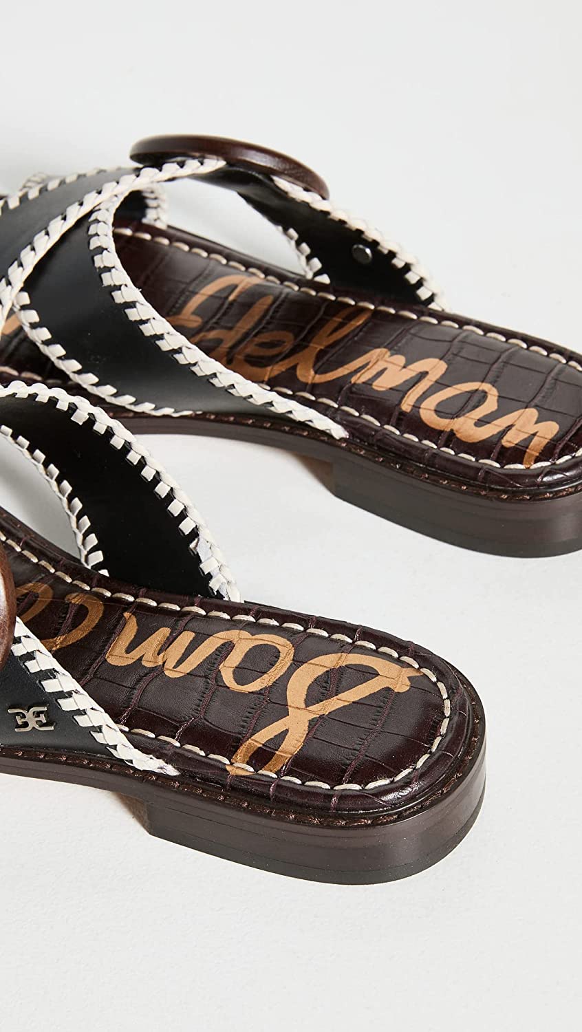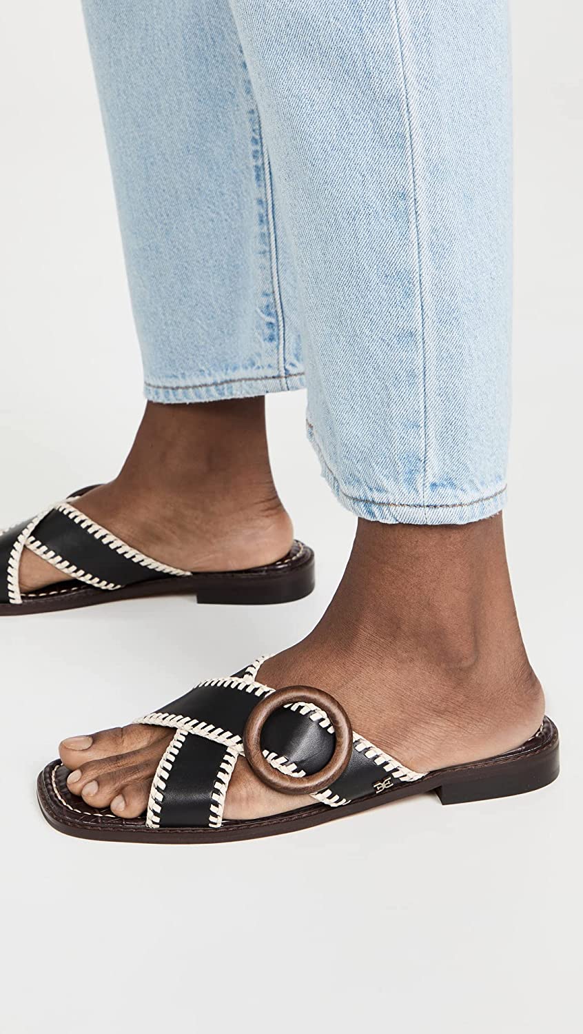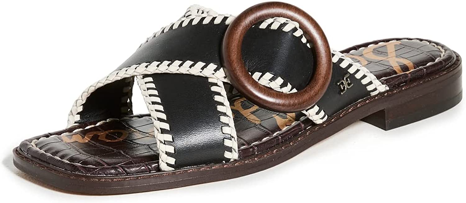 Sam Edelman Harlie Black Slip On Squared Toe Leather Strap Slides Flats Sandals