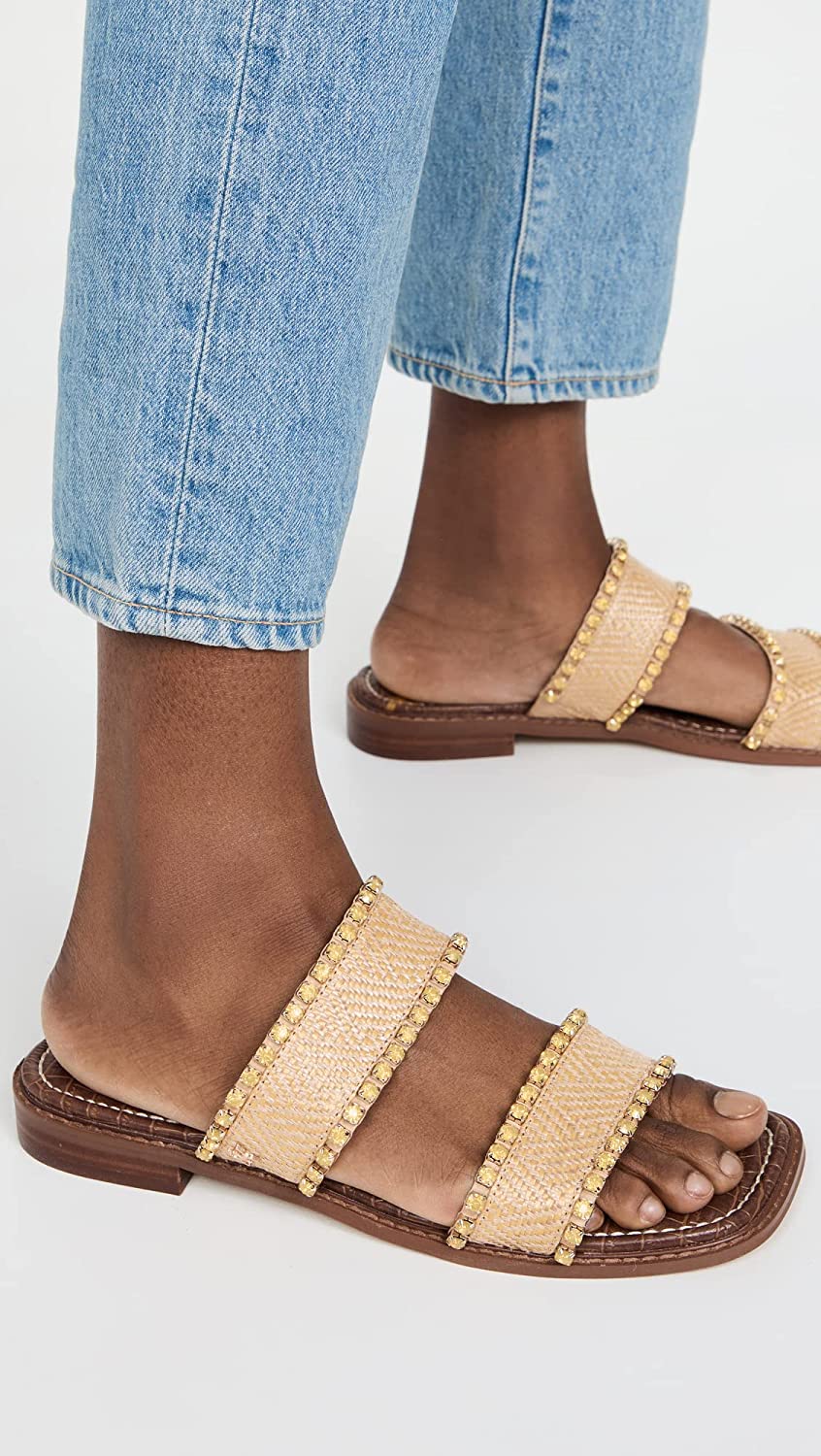 Sam Edelman Hopie Natural/Desert Sun Slip On Square Open Toe Double Strap Sandal