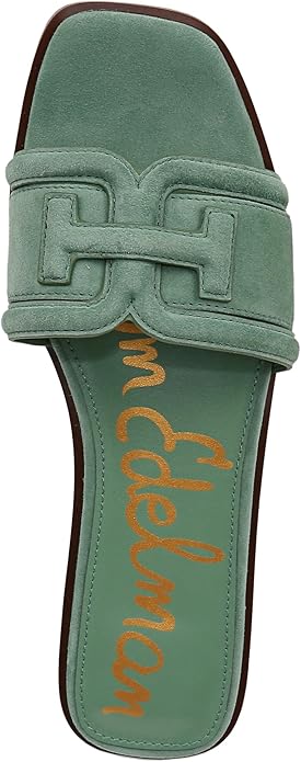 Sam Edelman Irina Green Garden Leather Squared Open Toe Flat Slides Sandals