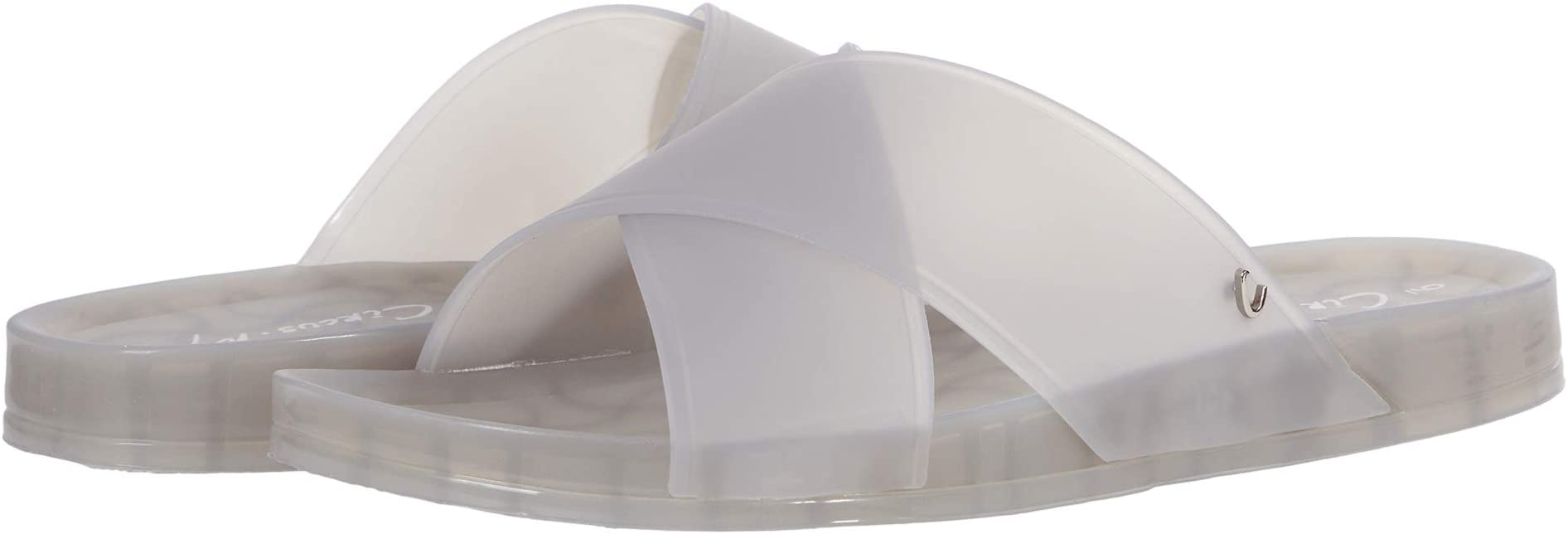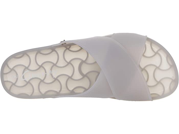 These fun jelly style slides are super comfortable and offer a unique translucent look. You'll want to wear these cute sandals all summer long. Synthetic uppers in a translucent cross strap slide style Smooth synthetic linings Contoured footbed Synthetic outsole