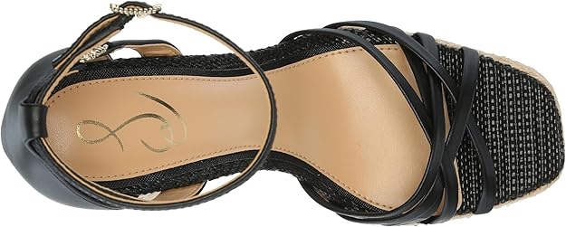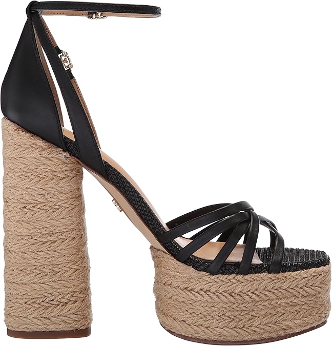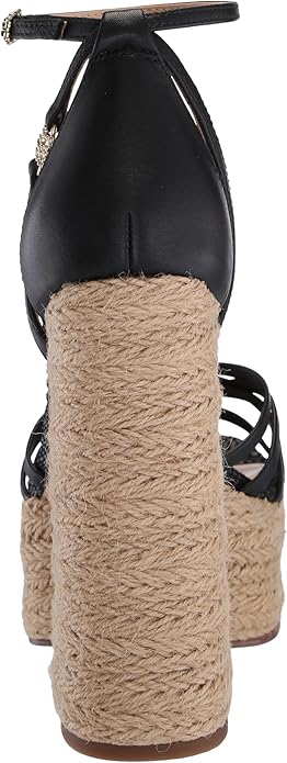 Sam Edelman Kade Black Leather Ankle Strap Open Toe Espadrille Block Heel Sandals
