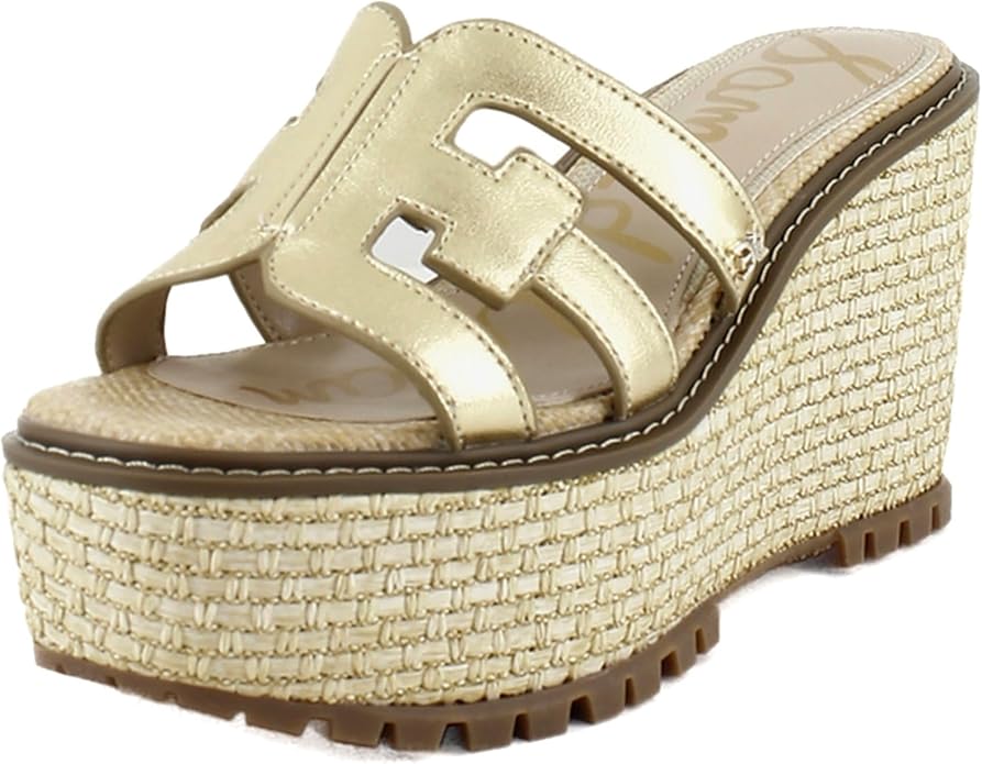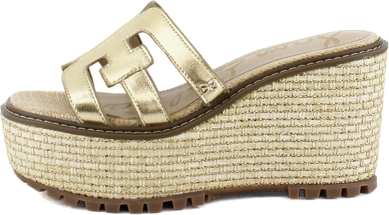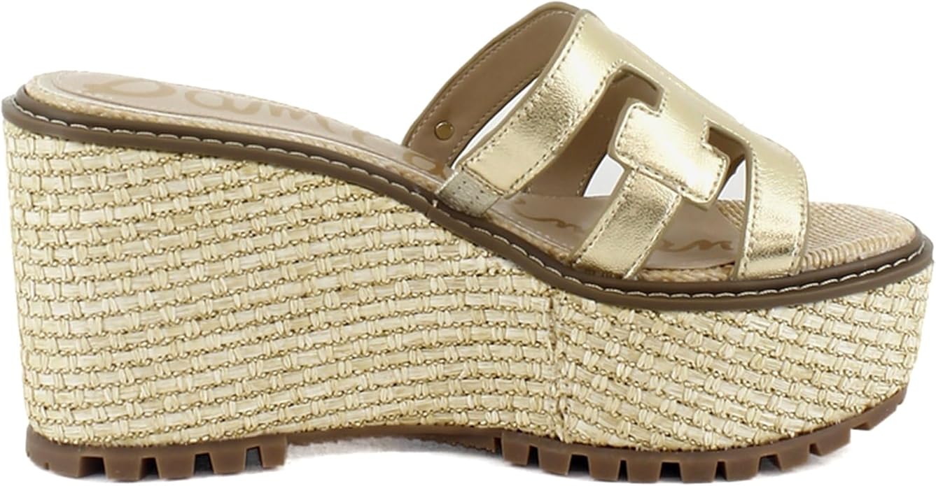 Sam Edelman Laine Jute Leather Wedge Heeled Open Toe Slip On Espadrille Sandals