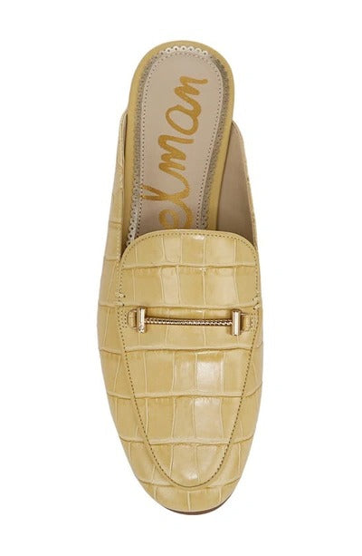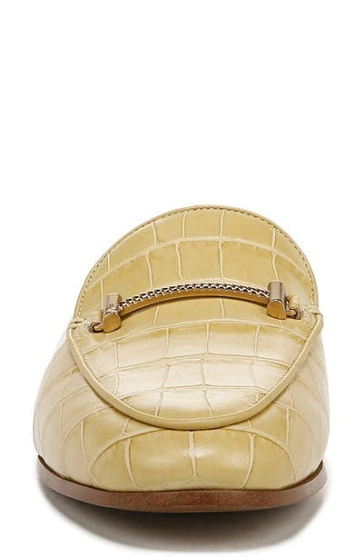 A timeless wardrobe staple, this classic loafer is updated with a backless, low-profile silhouette and finished with a slender gleaming bit at the vamp.