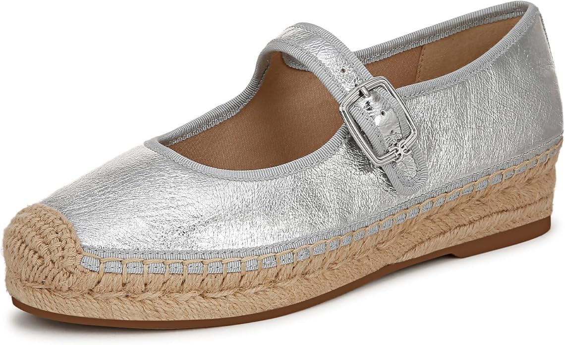 Sam Edelman Mackie Soft Silver Pointed Cap Toe Mary Jane Espadrille Loafers