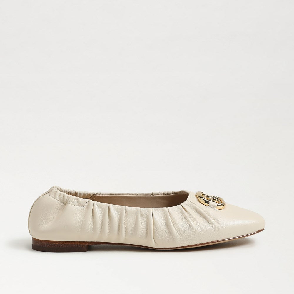 Sam Edelman Marlowe Modern Ivory Logo Detailed Slip On Square Toe Ballet Flats