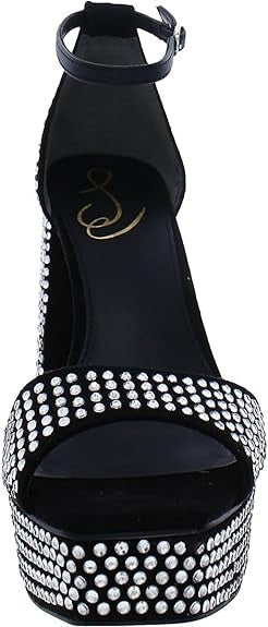 Sam Edelman Nellie Black Glitz Block Heel Ankle Strap Open Toe Heeled Sandals