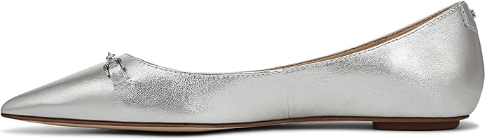 Sam Edelman Nori Silver Leather Pointed Toe Chain Detailed Slip On Ballet Flats