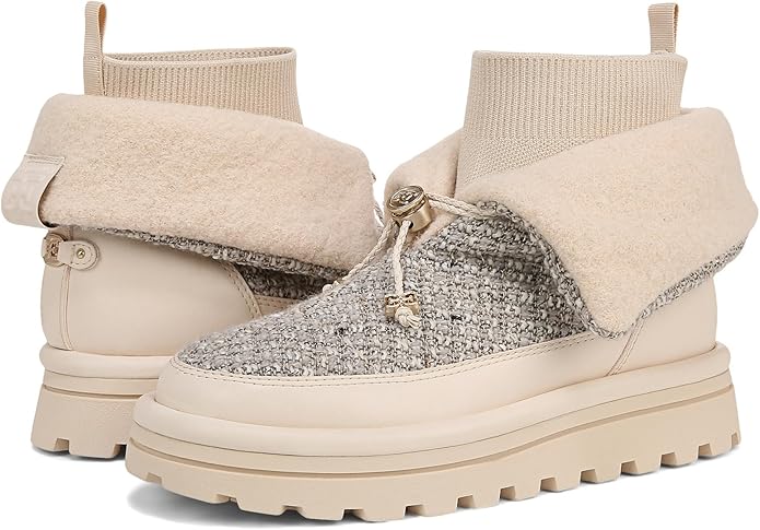 Meet Olin - a fold over ankle bootie with textured paneling and chunky lug sole. The cozy cuffs add a warm touch, perfect for chilly city strolls and casual coffee dates.