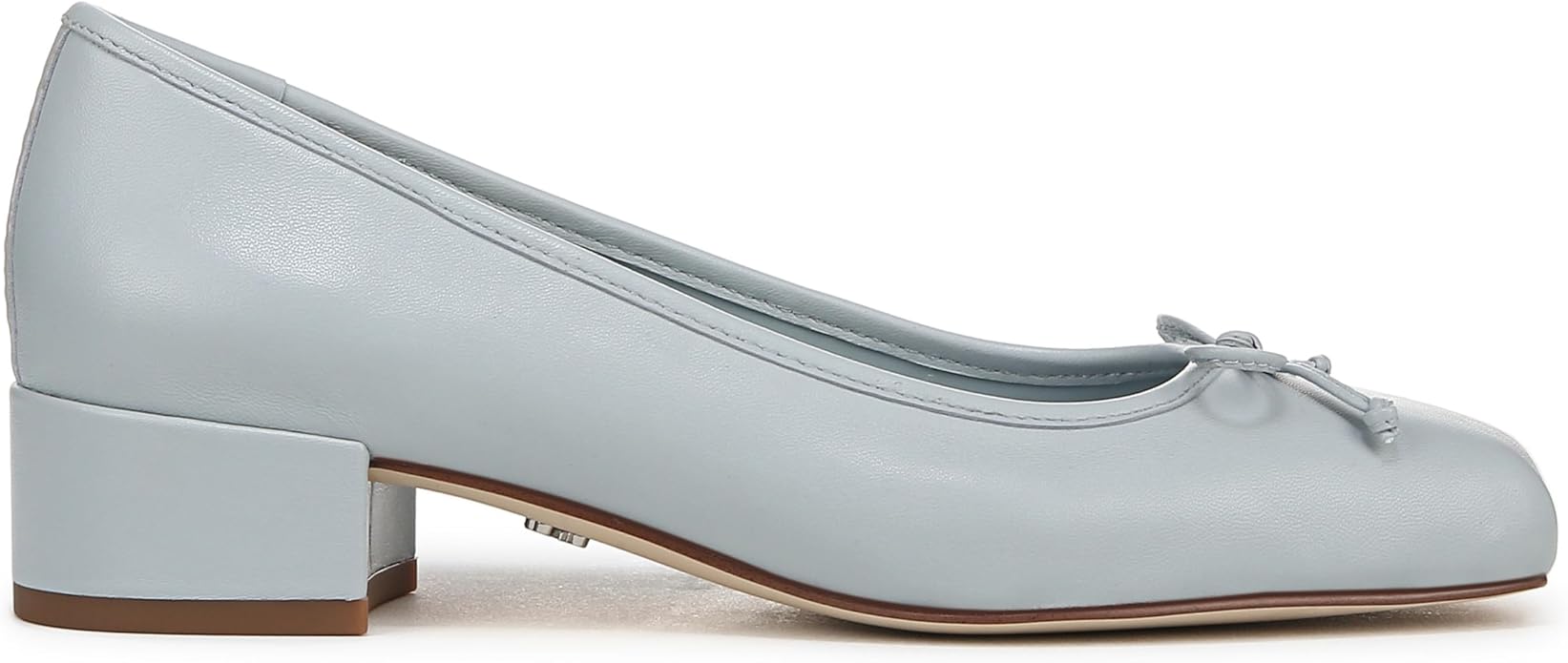 Sam Edelman Rosa Cape Blue Squared Toe Bow Detailed Slip On Block Heeled Pumps
