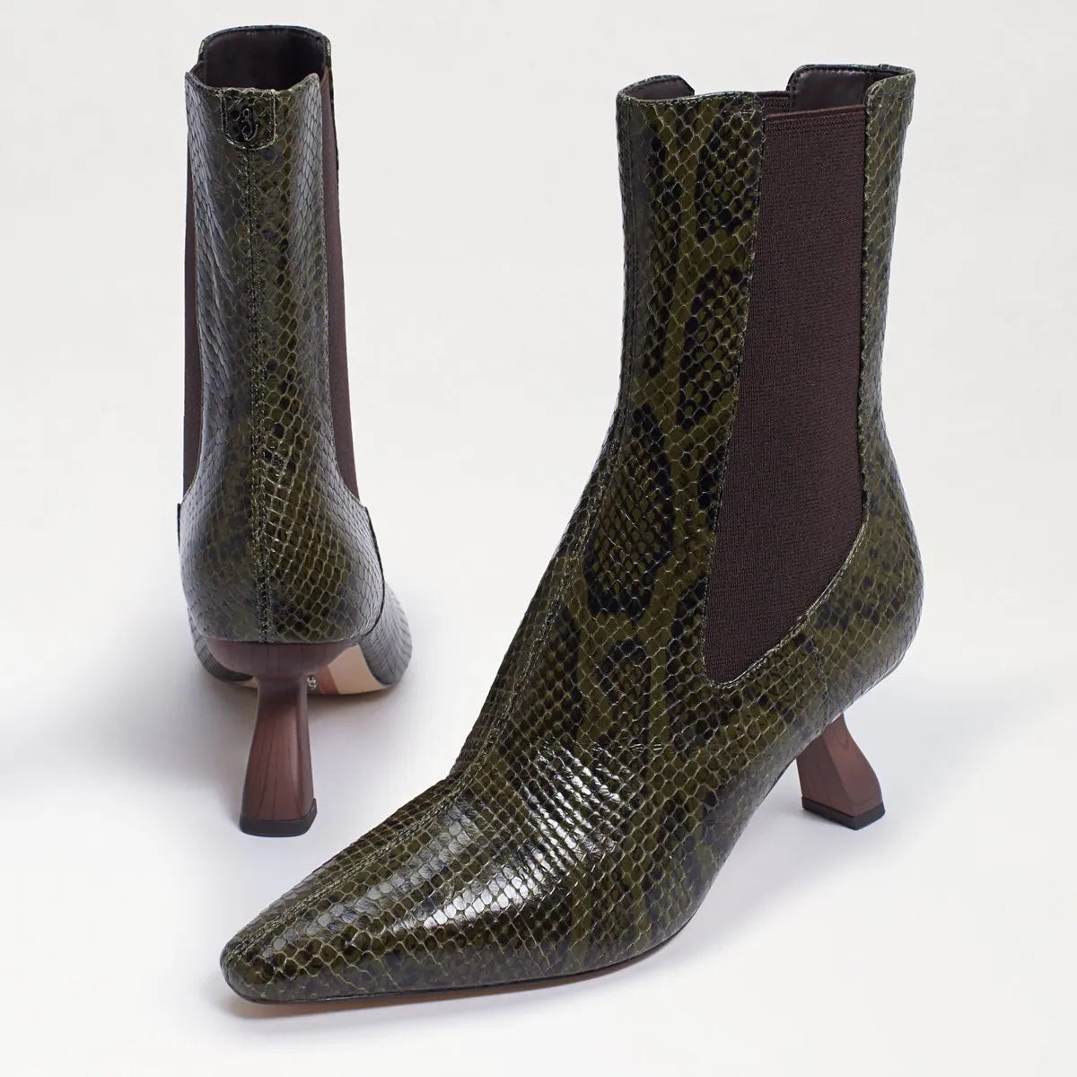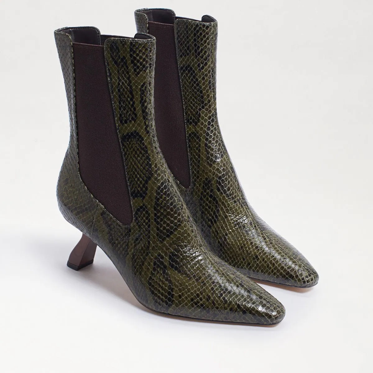 A sculptural heel and pointy toe deliver a modern update to the classic Chelsea silhouette in this sleek boot.