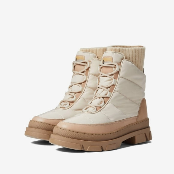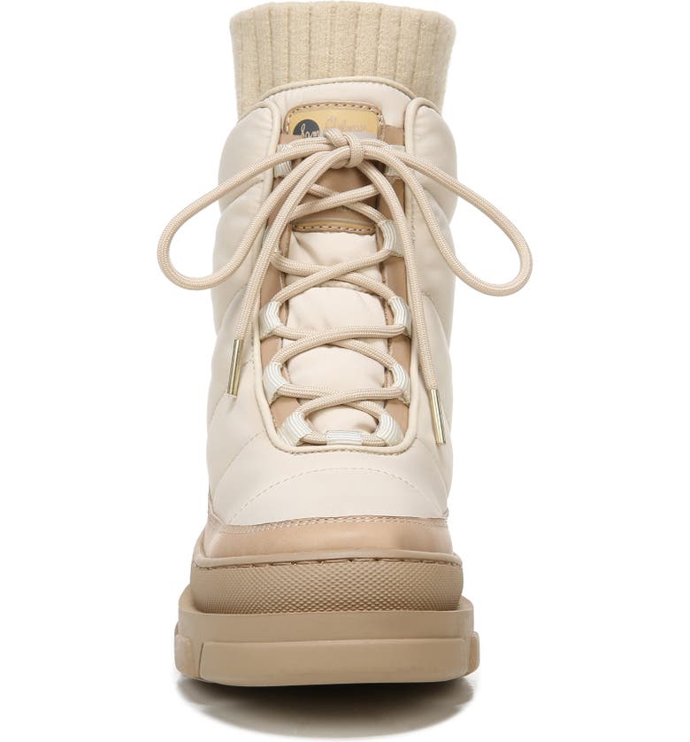 Sam Edelman Tabitha Moonbeam Lace Up Quilted Ribbed Cuff Combat Chunky Boots