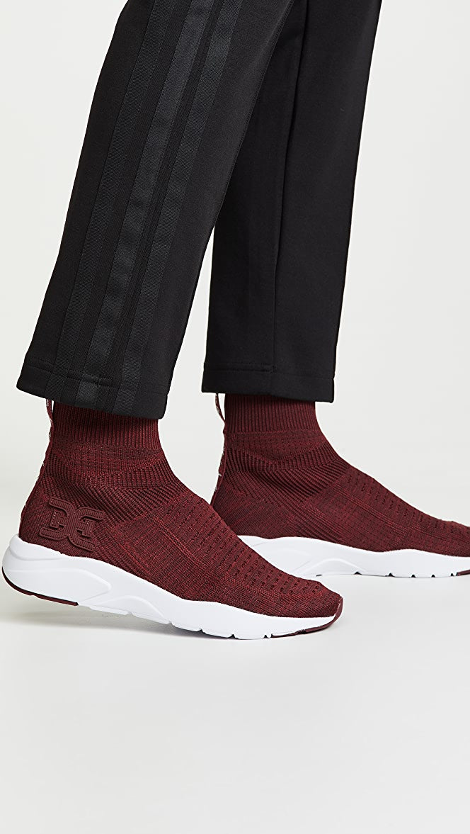 "Tara" sneaker in stretchy knit fabric with logo webbing down the back.
