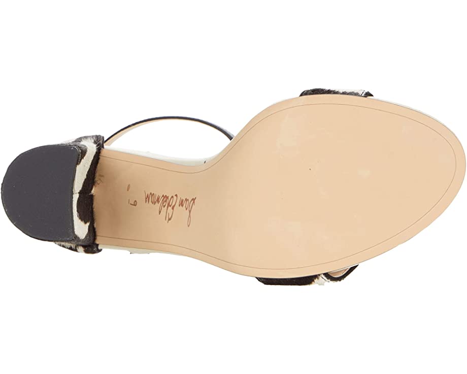 Sam Edelman Yaro Ivory Black Block Heel Ankle Strap Two Piece Open Toe Sandals