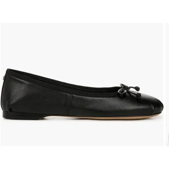 Sam Edelman Zooey Black Leather Bow Detailed Rounded Toe Slip On Ballet Flats