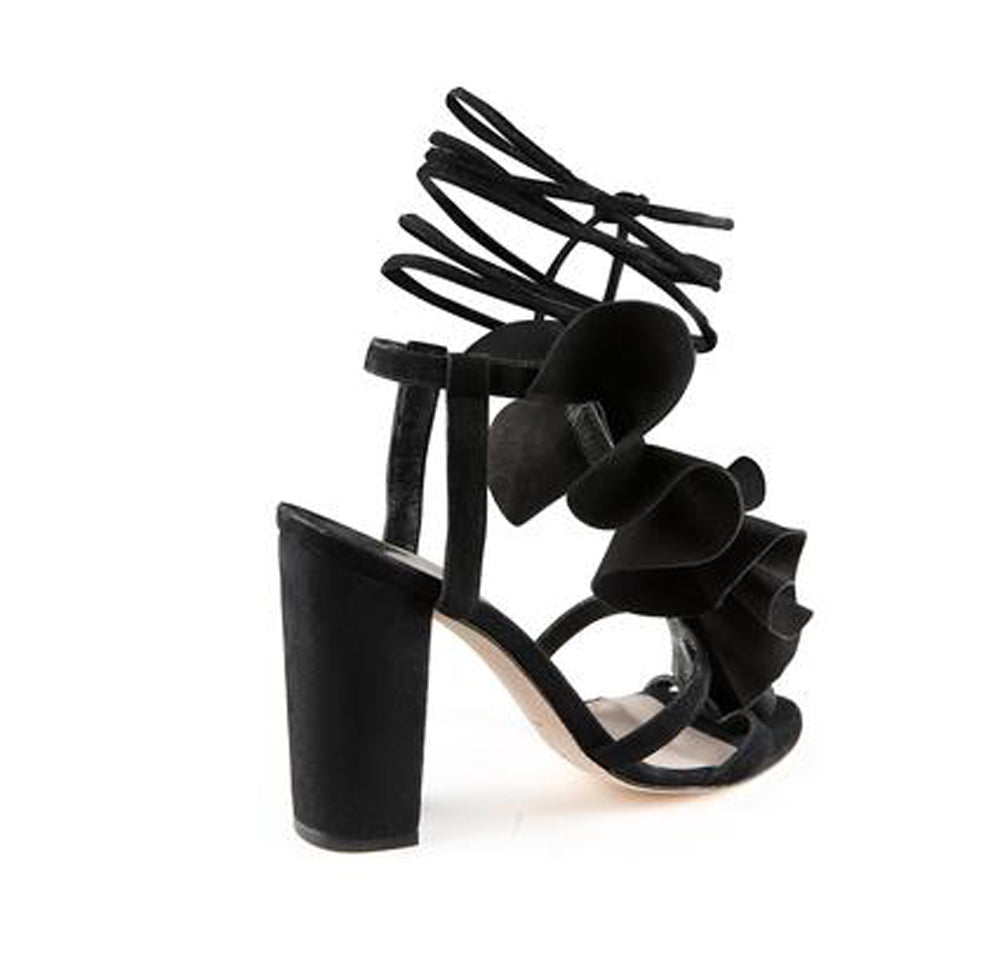 Ashley Cole Leta Black Nubuck Ruffle Block Heel Open toe City Designer Sandals
