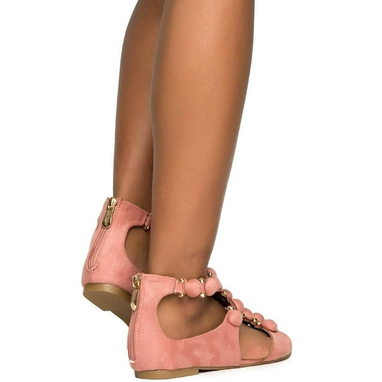 You're cute as a button, and so are these sandals! Make your way into a great day with this rounded button design. The spikes give them an edgy look making you look tough. Suede-like upper. Padded sole. Color: natural