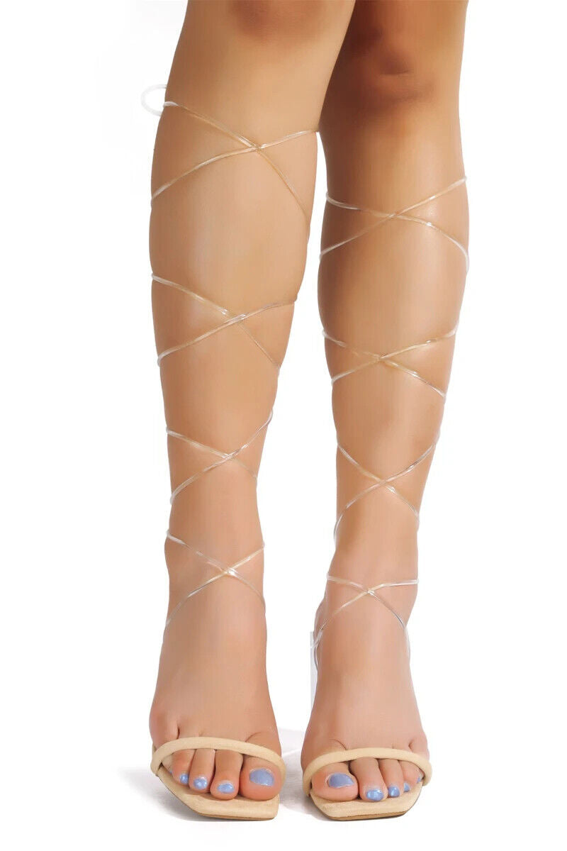 Class up your look with some chic strappy open toe sandals. Designed with a cross over front, spool heel and adjustable ankle strap.
