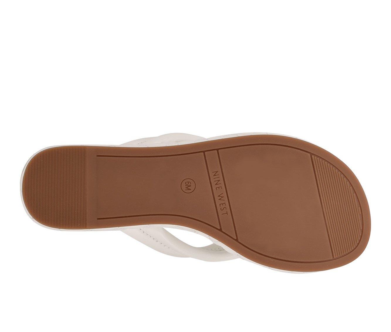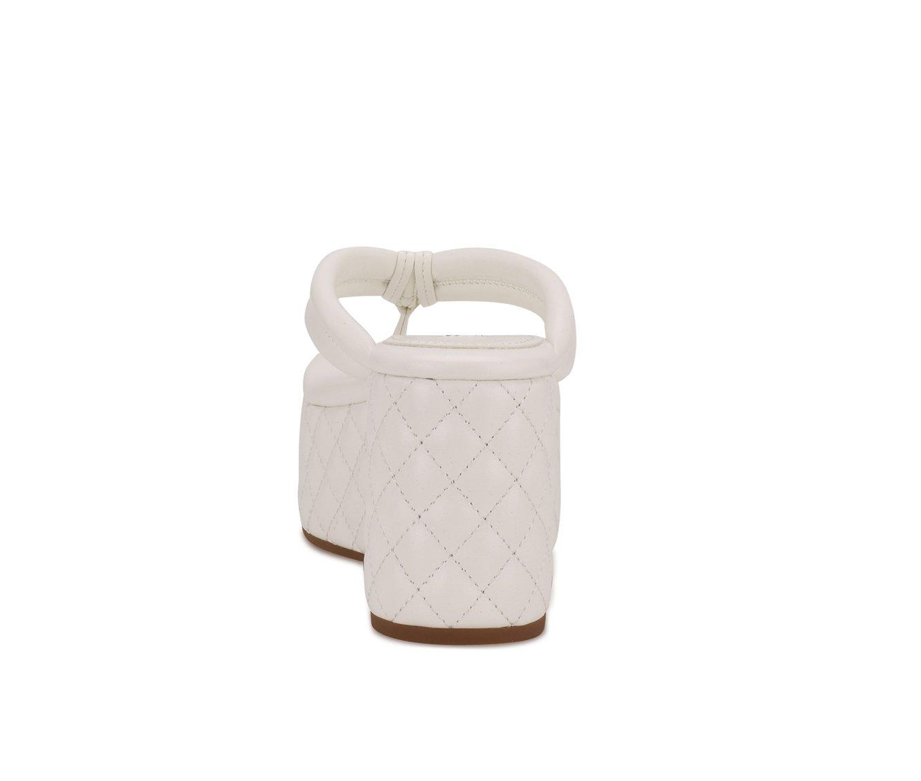 Nine West Newya White Slip On Rounded Open Toe Thong Mule Platform Wedge Sandal