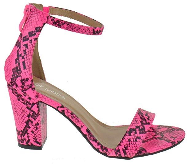 Top Moda Hannah-1 Neon Pink Ankle Strap High Block Heel Open Toe Heeled Sandals