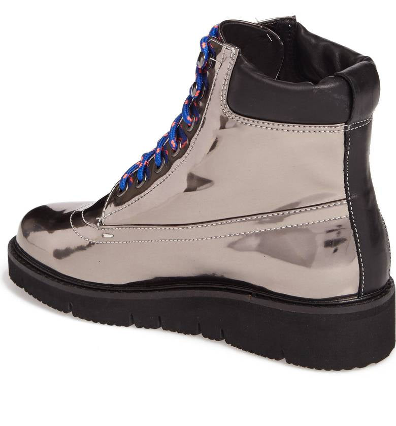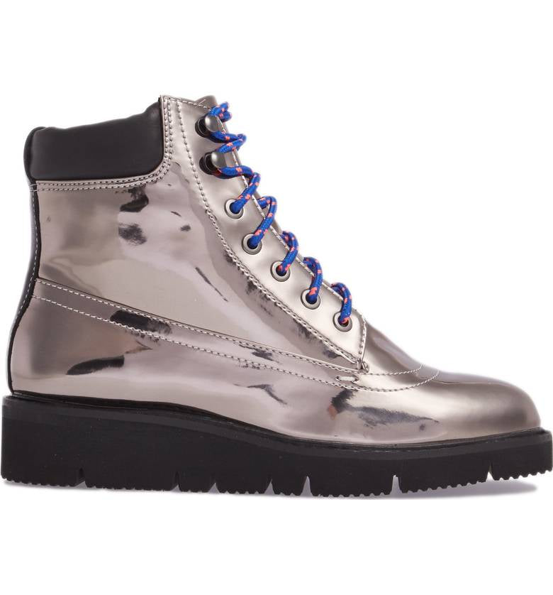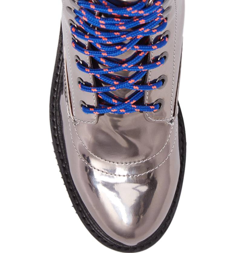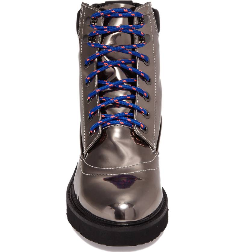 Shellys London Erin Pewter Leather Multi Lace Up Chunky Platform Combat Boot