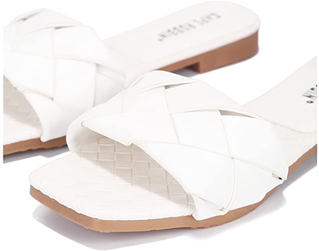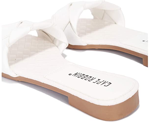 Cape Robbin Deja Woven Mules Slip On Flat Slides Sandals WHITE (7, WHITE)