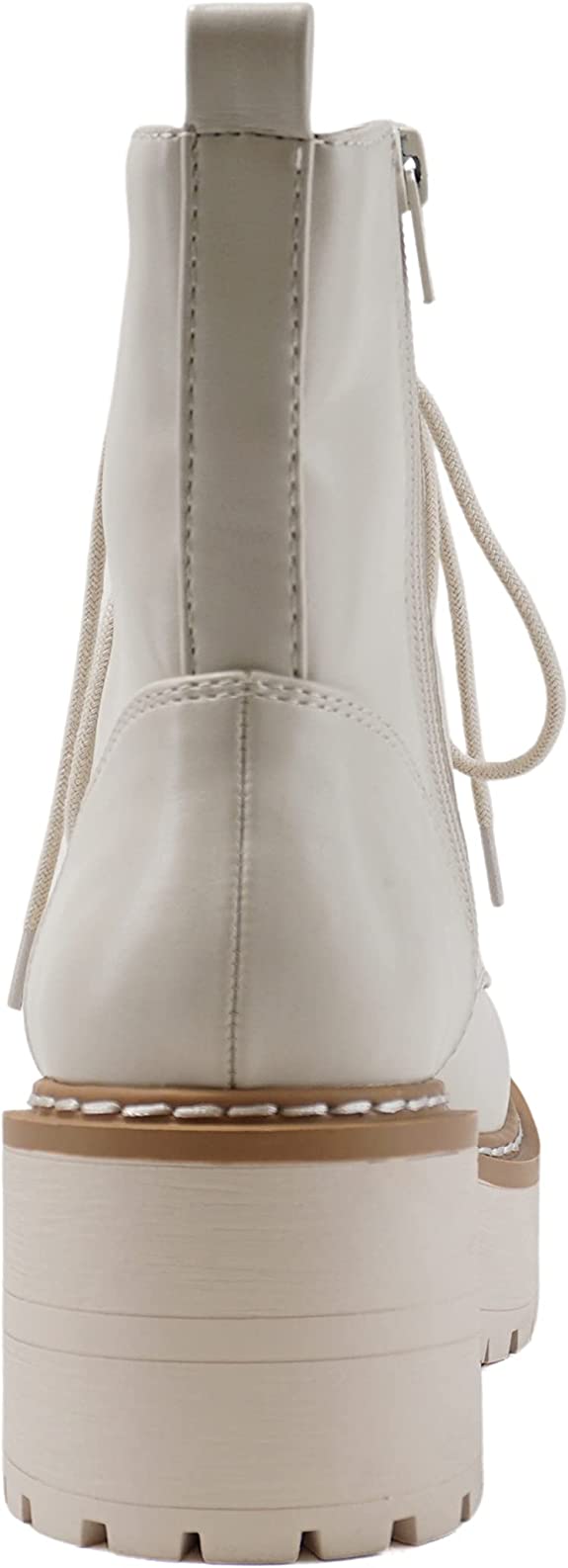 - Platform Combat Boot with Chunky Lug Sole Platform and Chunky Heel with Welt Stitching