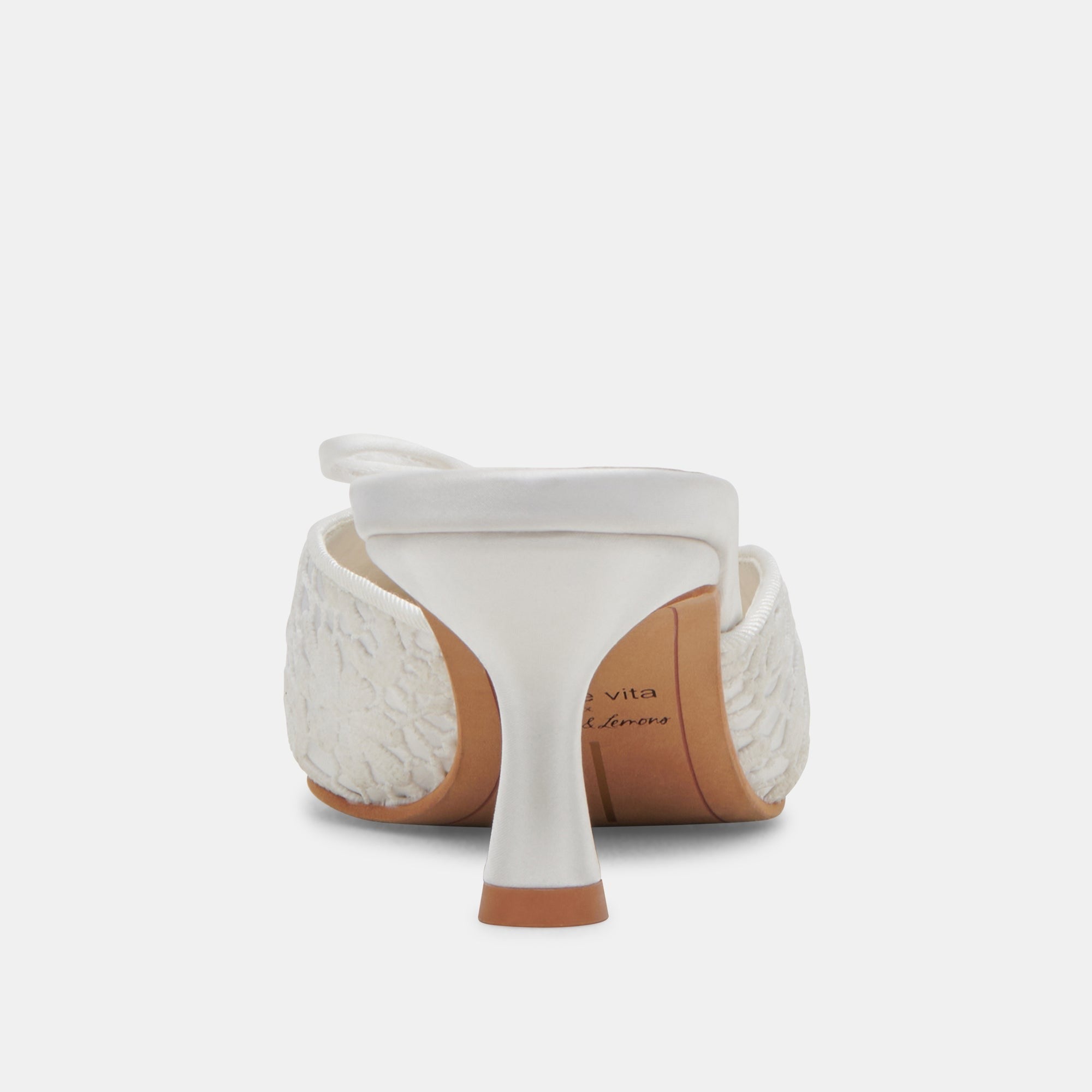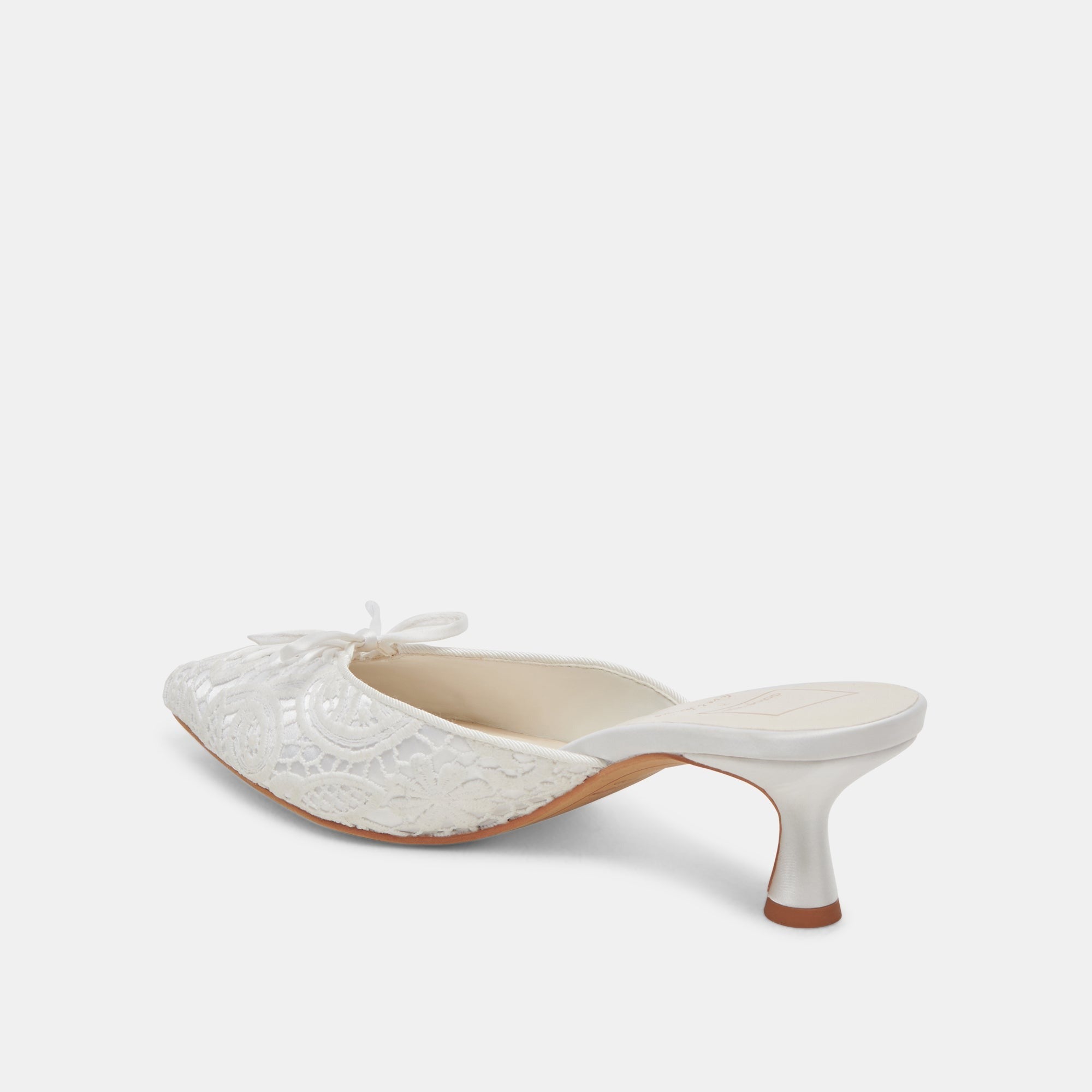 Dolce Vita Camile White Floral Eyelet Pointed Toe Slip On Kitten Heeled Pumps