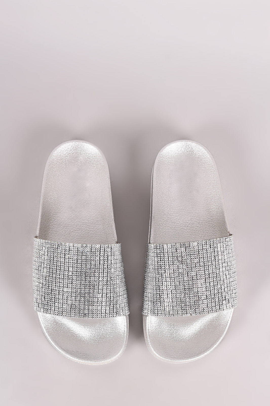 These crystalized sandals are just the right thing to make you stand out. You'll have sparkle in every step. Style them best with a cute semi casual dress.