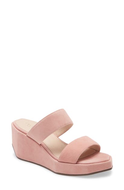 A geometric, architectural platform wedge grounds a striking slide fitted with a foam-cushioned footbed for everyday comfort.