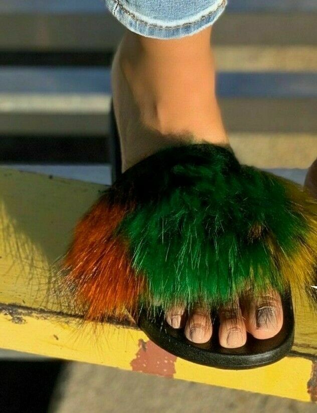 Flexible slip on open toe style that is easy to wear anytime and anywhere.Fuzzy slippers for women are available in several colors so you can match your style,perfect for all the year round,Featuring a Soft Raccoon Fur Upper.