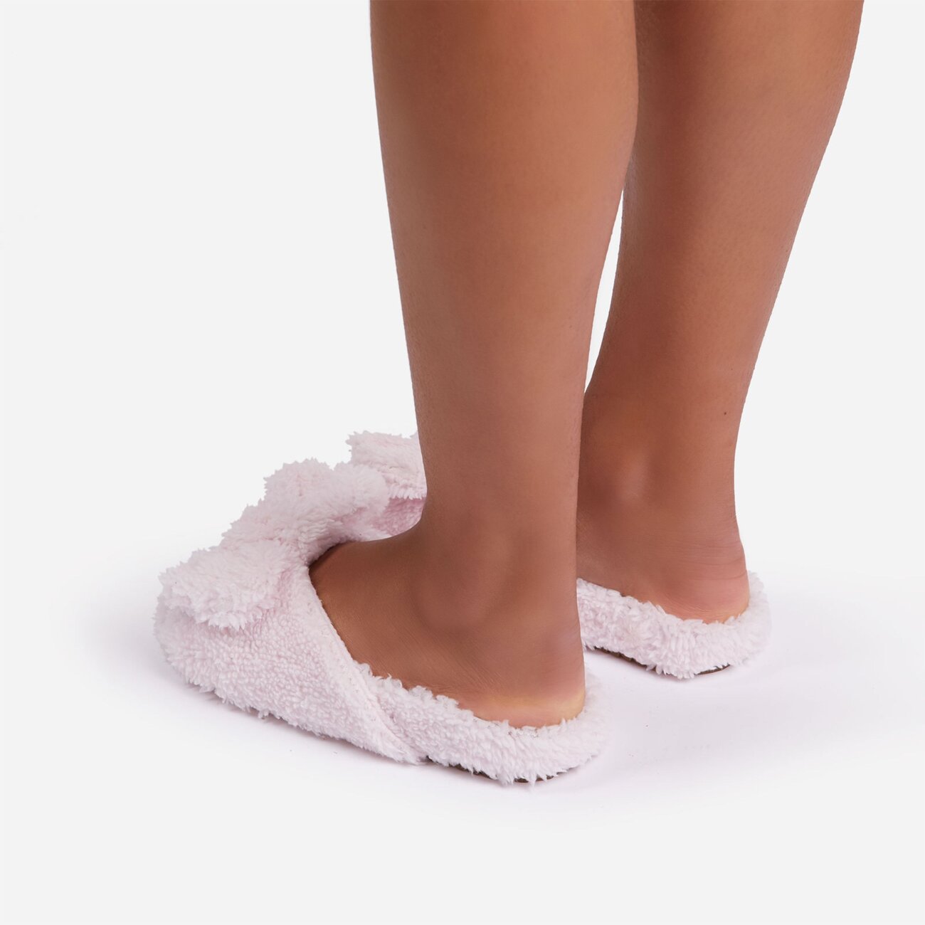 These slippers are too cute to care. Featuring a pink shearling material and hard sole, we are obsessed!