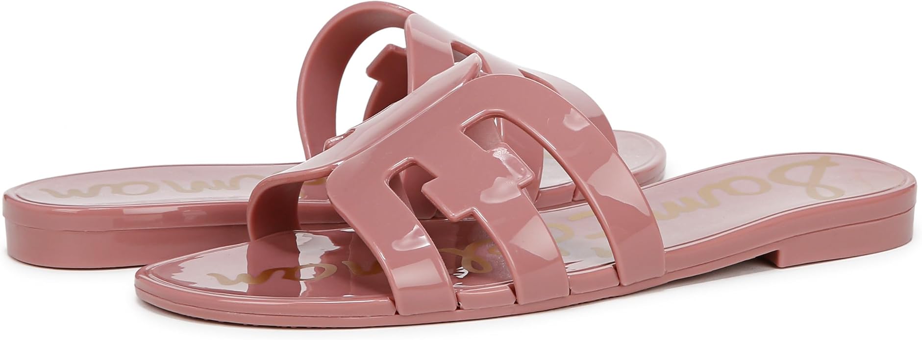 Sam Edelman Bay Pink Lily Round Open Toe Slip On Leather Strap Slide Sandals