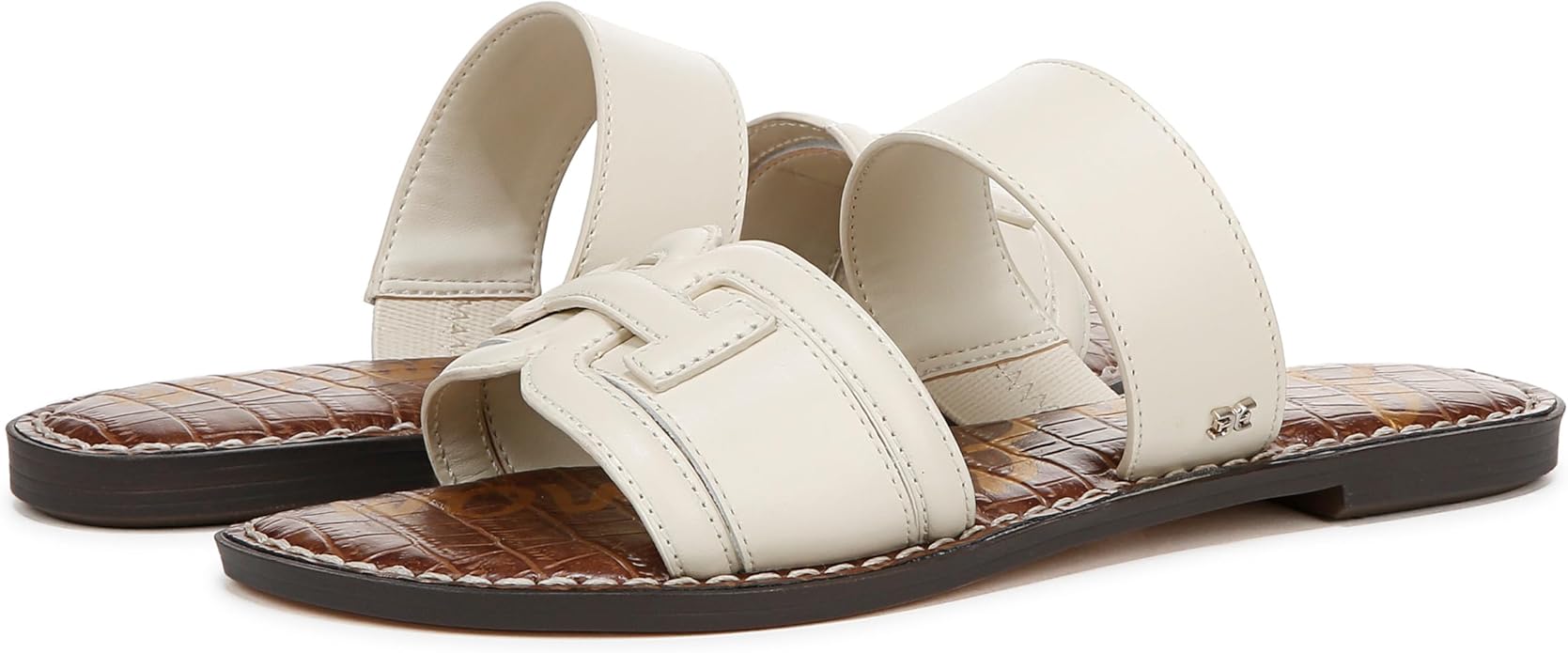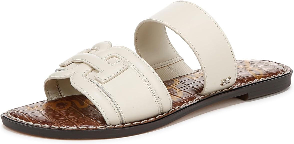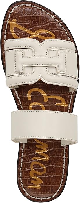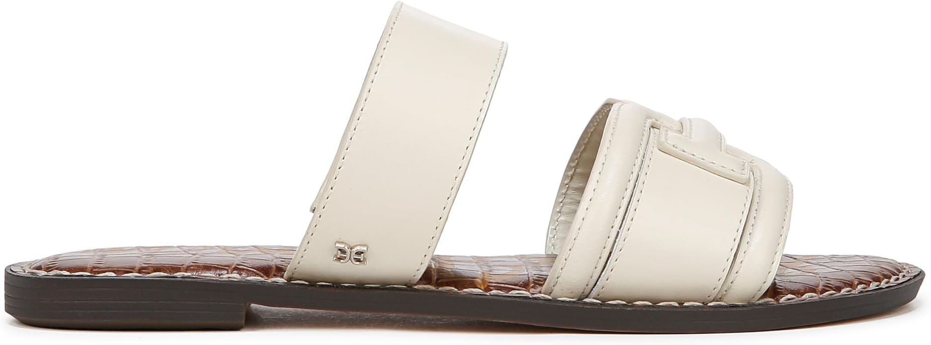 Sam Edelman Gabi Modern Ivory Double Strap Open Toe Slip On Flat Slides Sandals