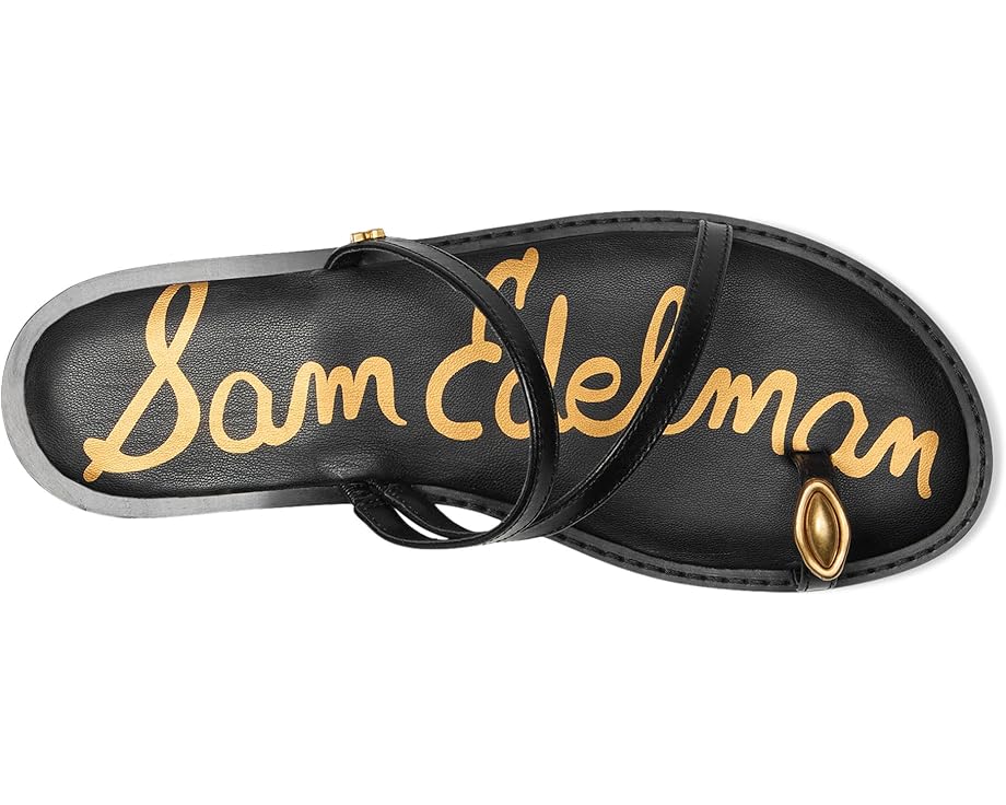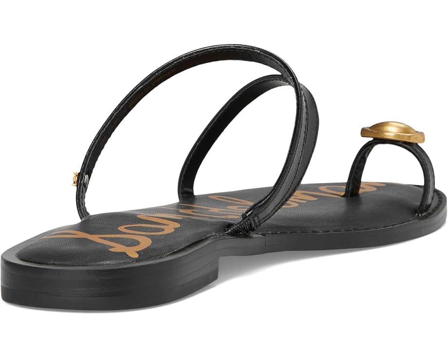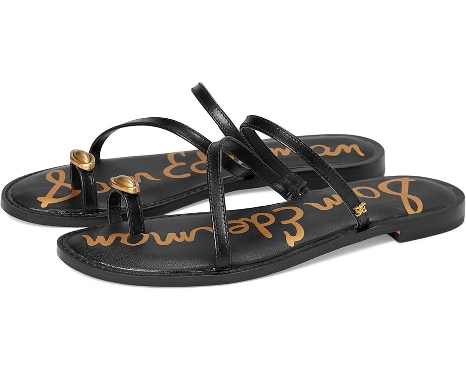 Sam Edelman Harlyn Black Leather Strappy Toe Ring Slip On Flat Slides Sandals