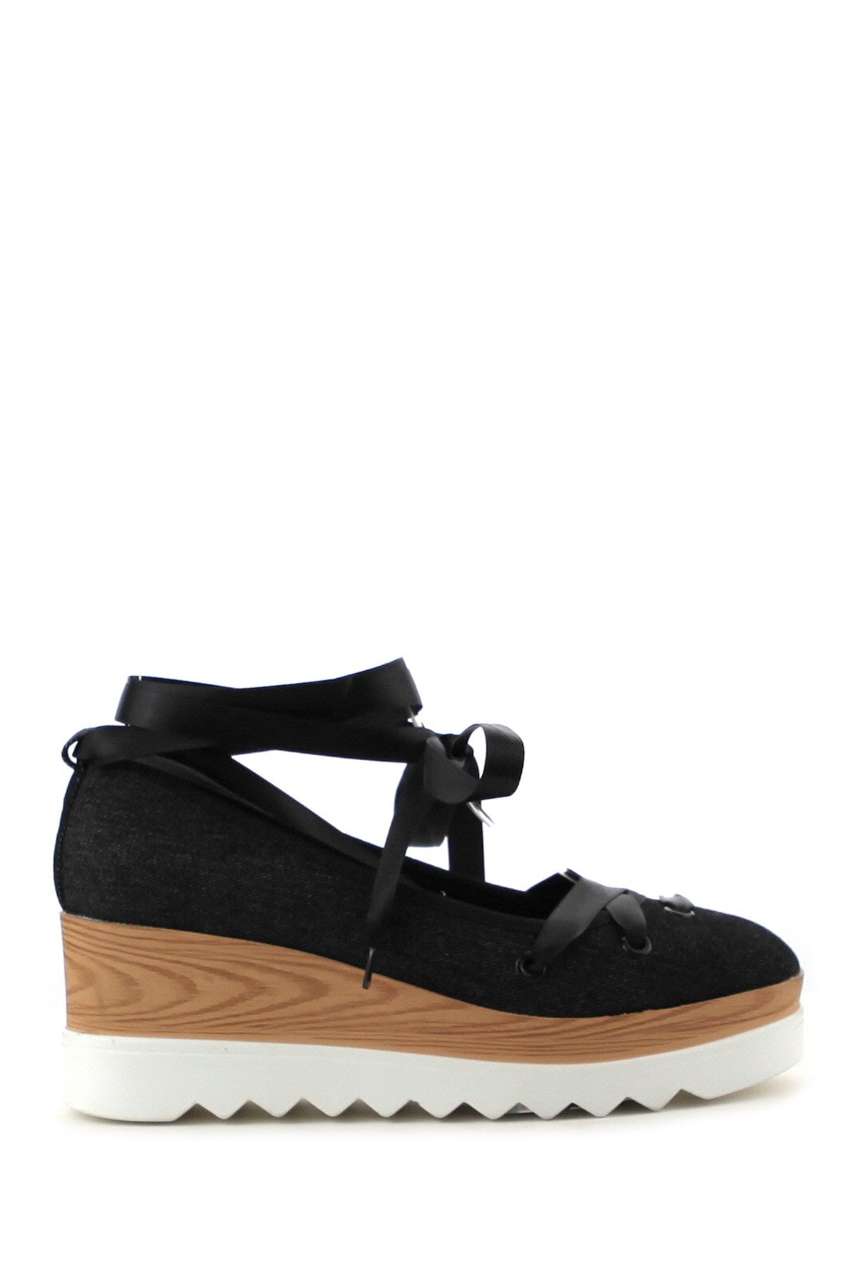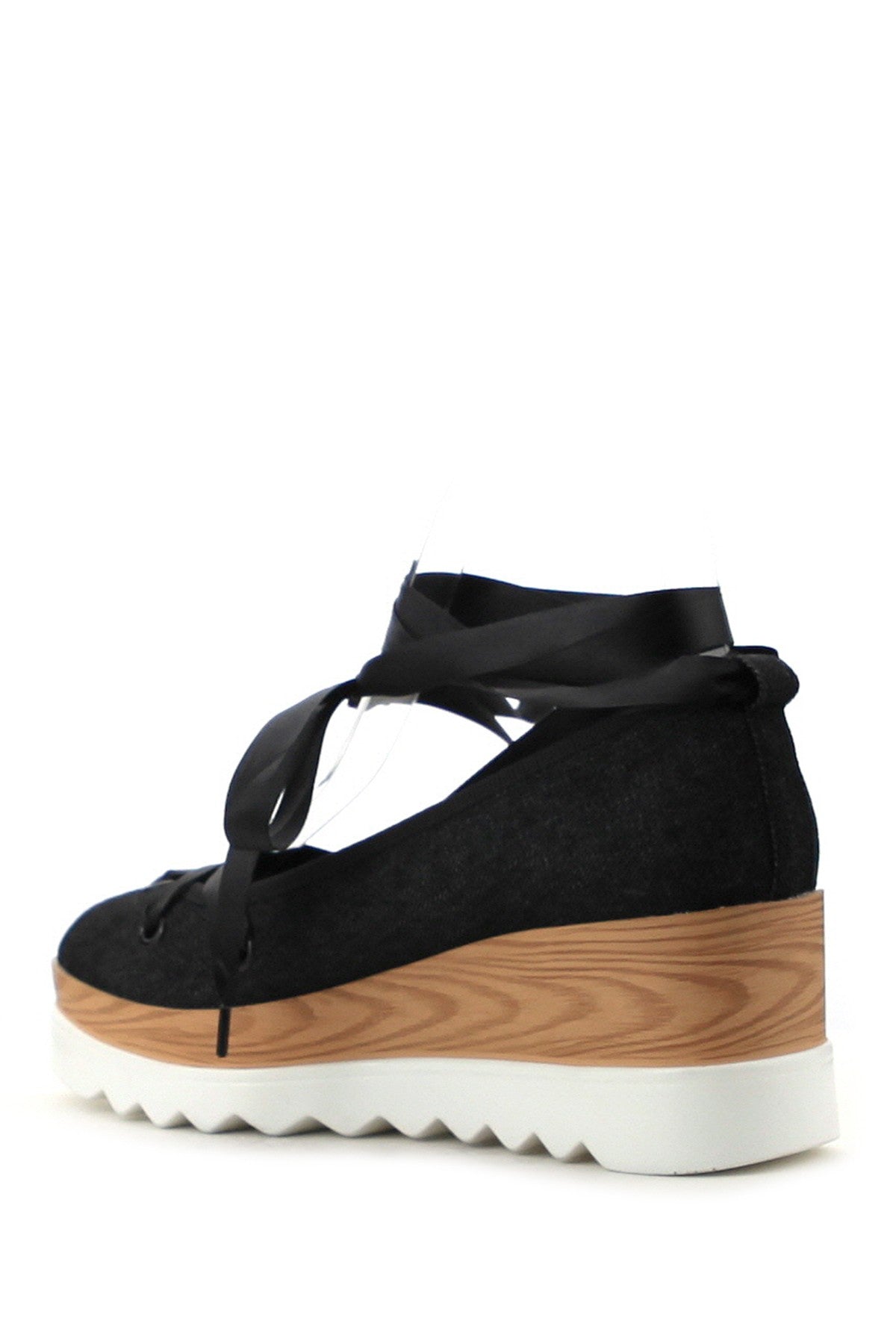 Cape Robbin Fara-5 Tie Up Wedge Platform Black Denim Sandal Pumps White Sole