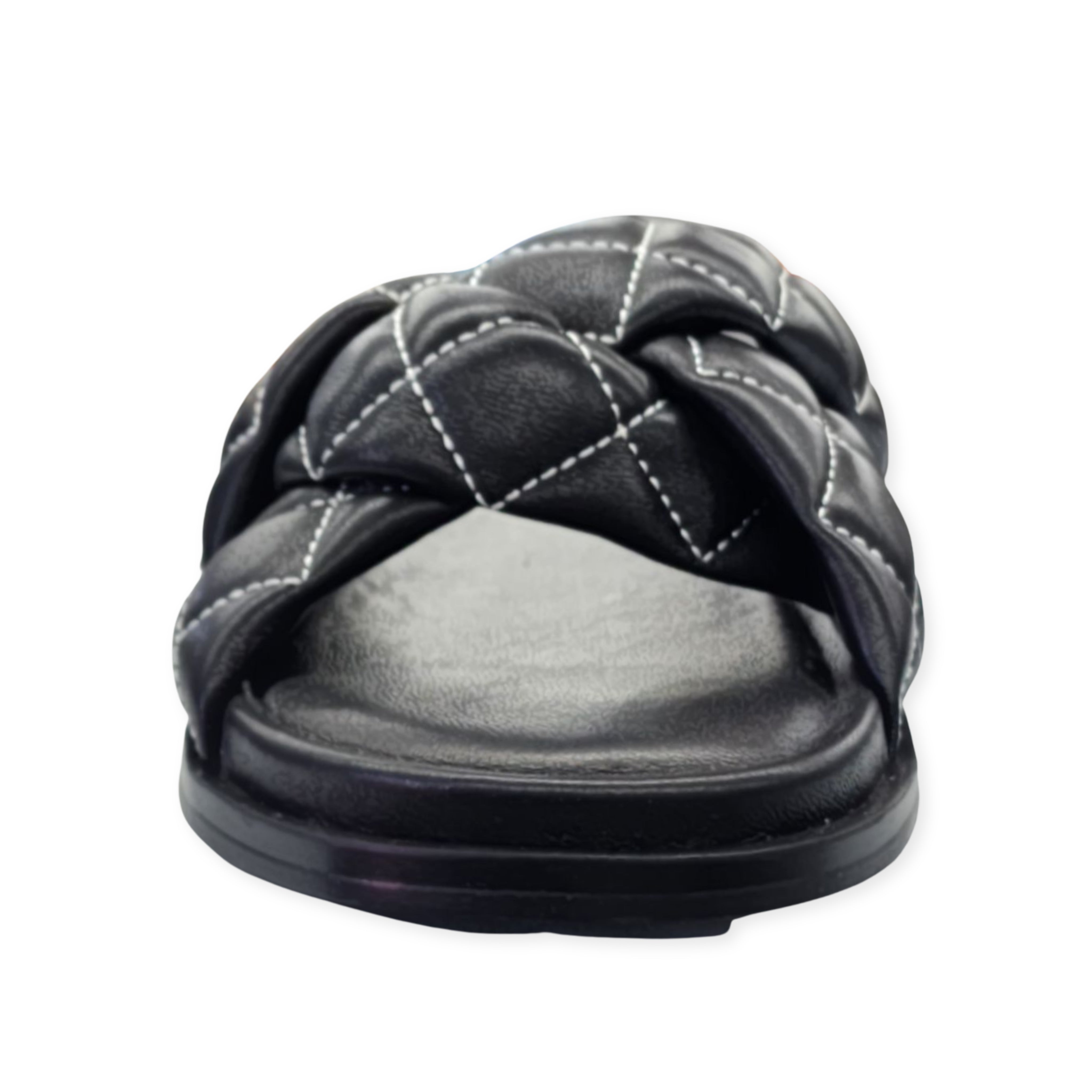 Cecelia New York Ellie Black Leather Womens Casual Slip On Open Toe Cage Sandals