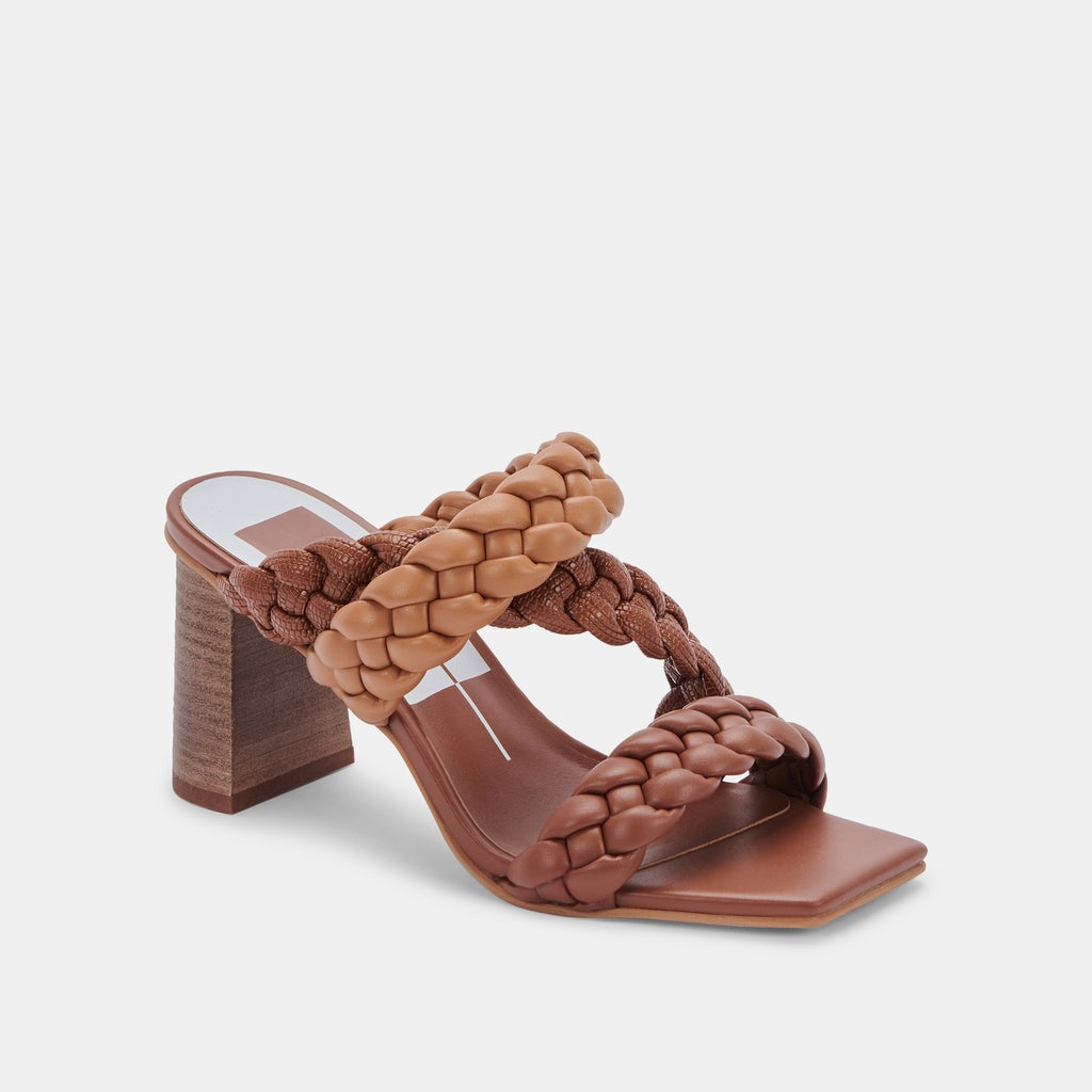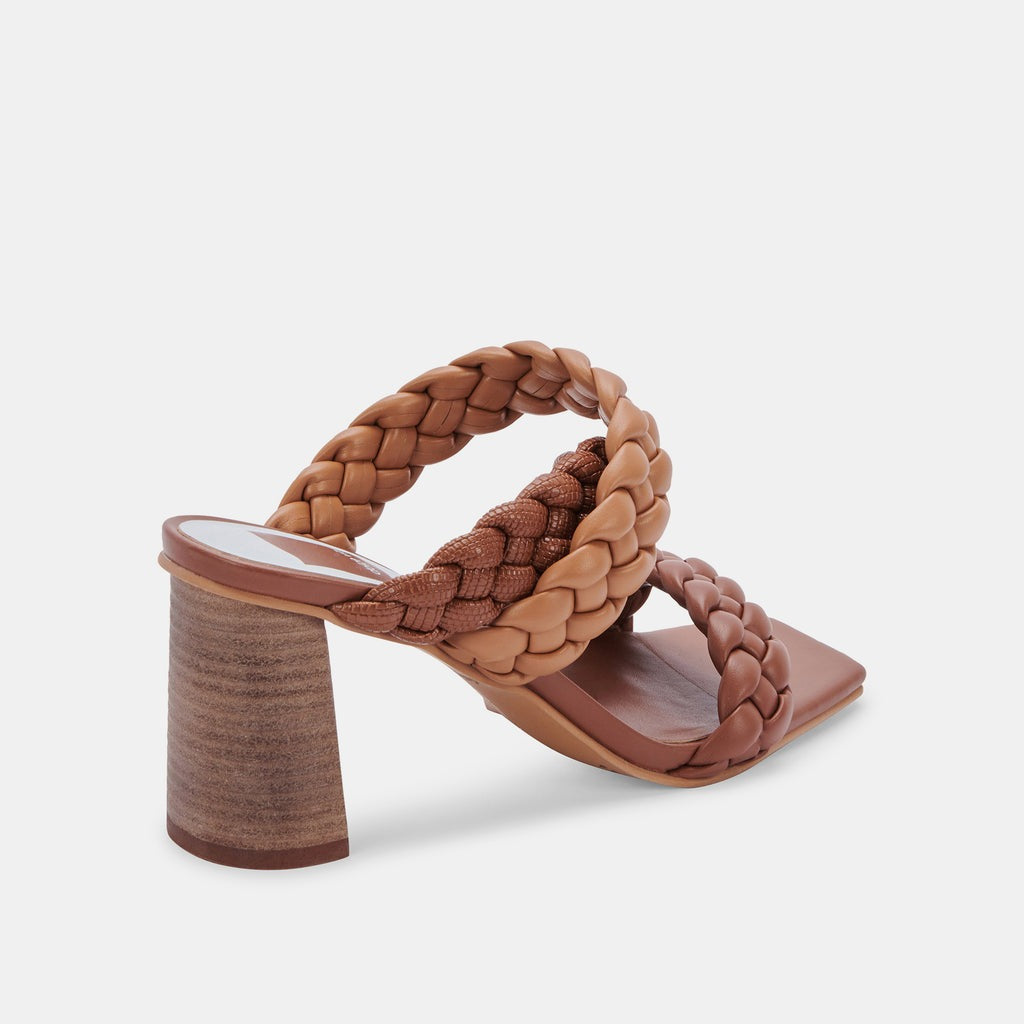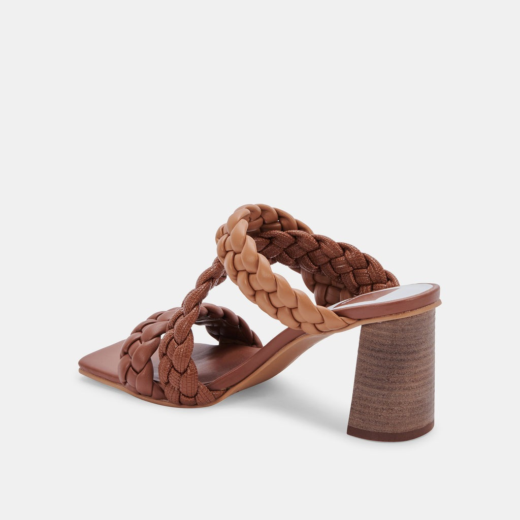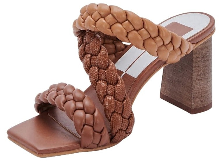 Dolce Vita Partha Brown Multi Stella Slip On Square Open Toe Block Heeled Sandal