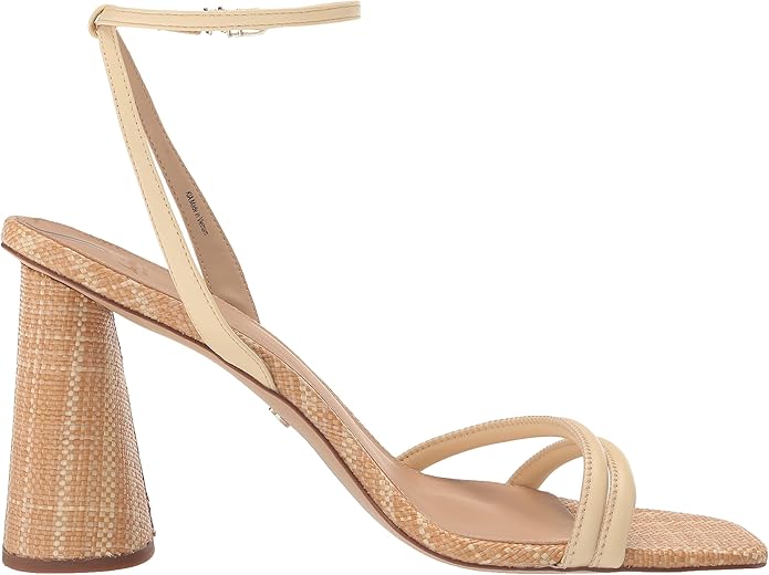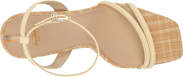 Sam Edelman Kia Bleached Wheat Open Toe Ankle Strap Block Heeled Wide Sandals