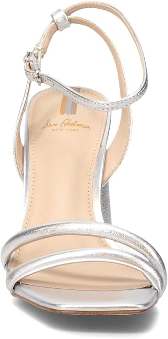 Sam Edelman Kia Soft Silver Smooth Leather Open Toe Ankle Strap Wide Sandals