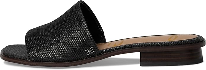 Sam Edelman Sabrina Black Raffia Leather Squared Open Toe Slip On Mules Sandals
