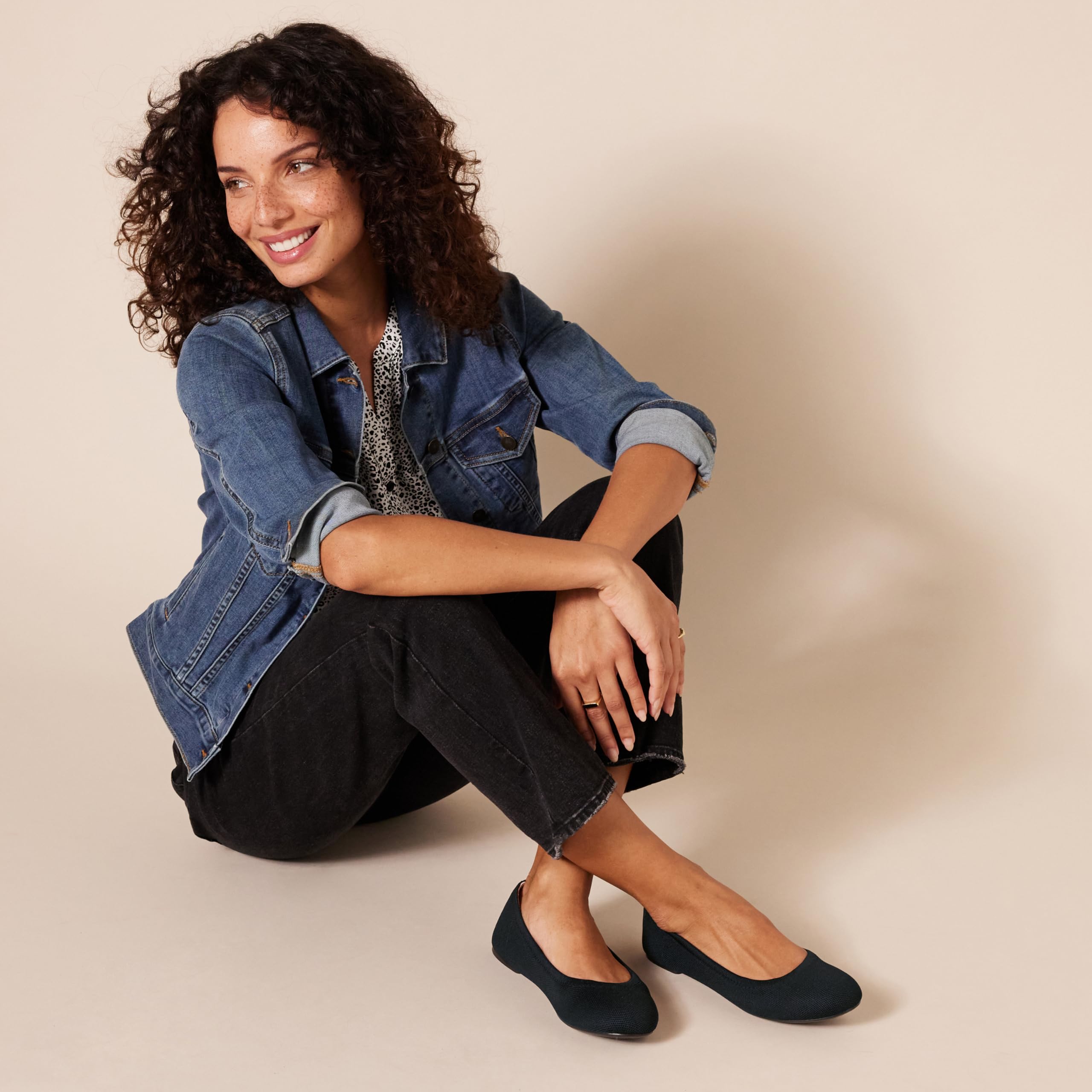 Amazon Essentials Knit Black Fashion Slip On Rounded Toe Ballet Flat Shoes 9 Wide