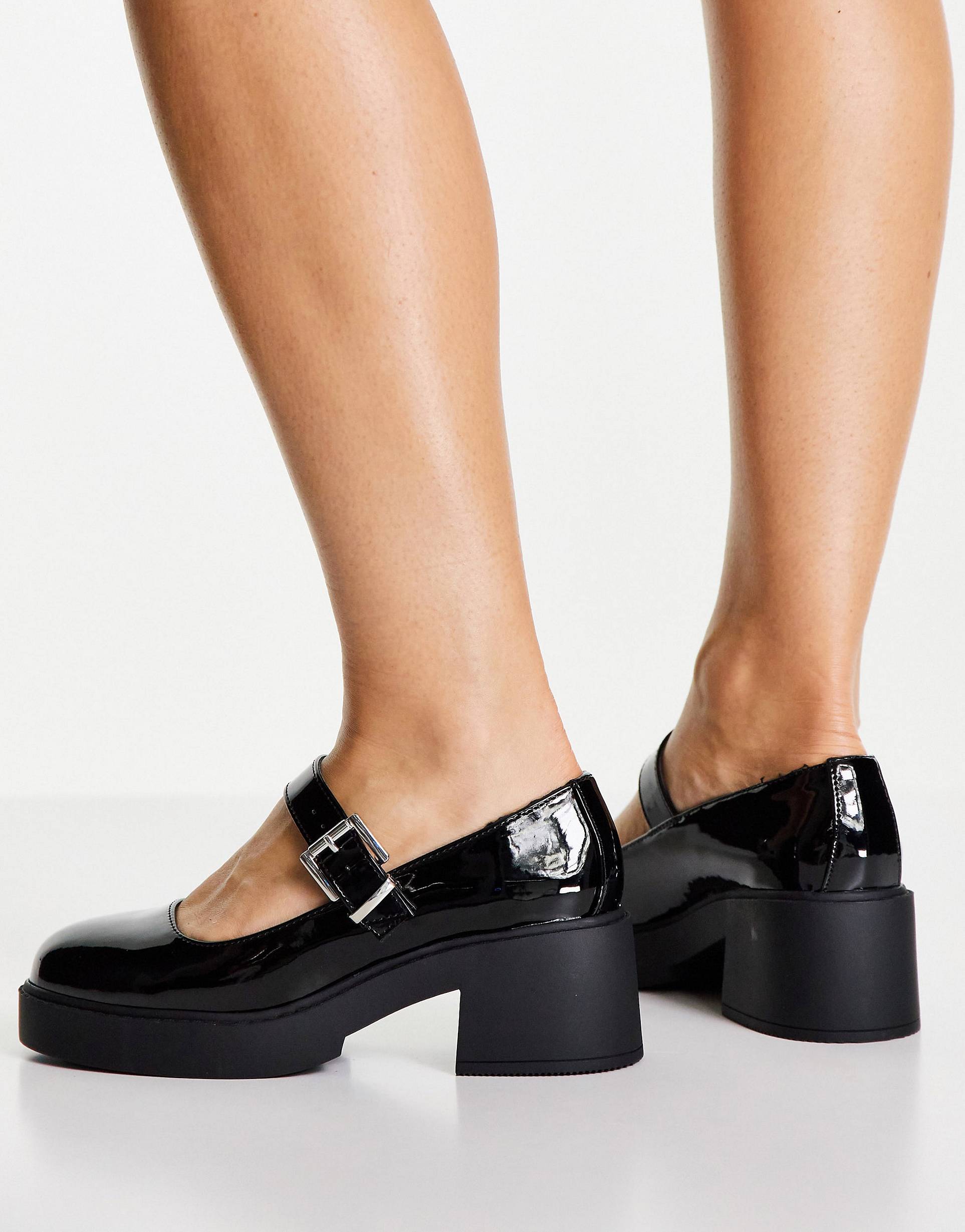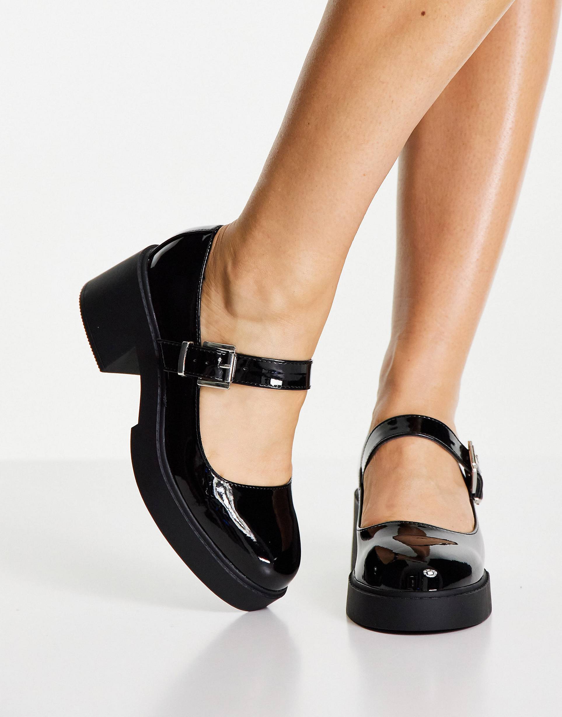 Asos Sebi Black Patent Fashion Buckle Mary Jane Rounded Toe Chunky Heel Loafers