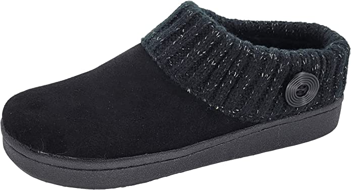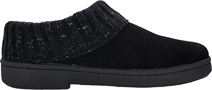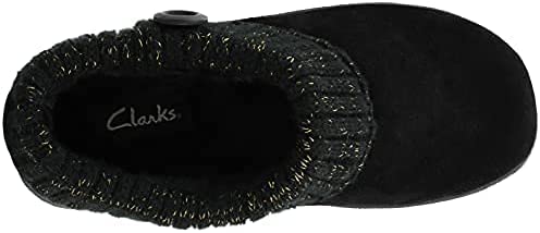 Clarks Black Knitted Collar Winter Clog Rounded Closed Toe Slippers