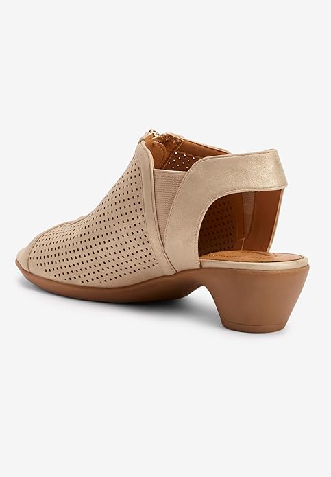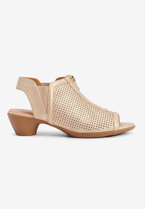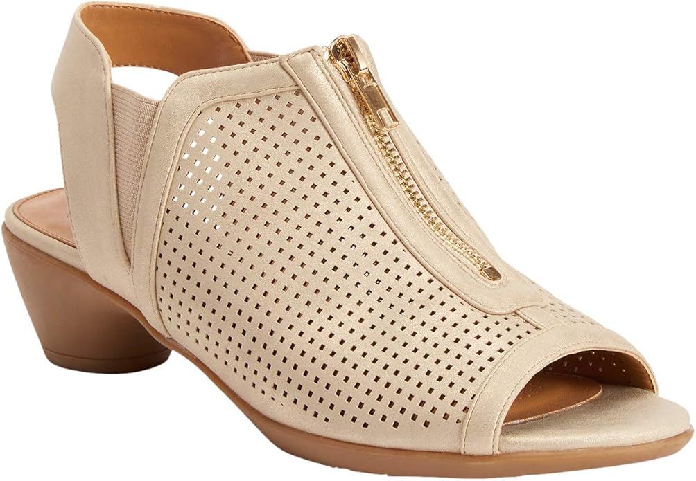 Comfortview Aurora Champagne Fashion Zipper Open Toe Block Low Heeled Sandals 9.5W