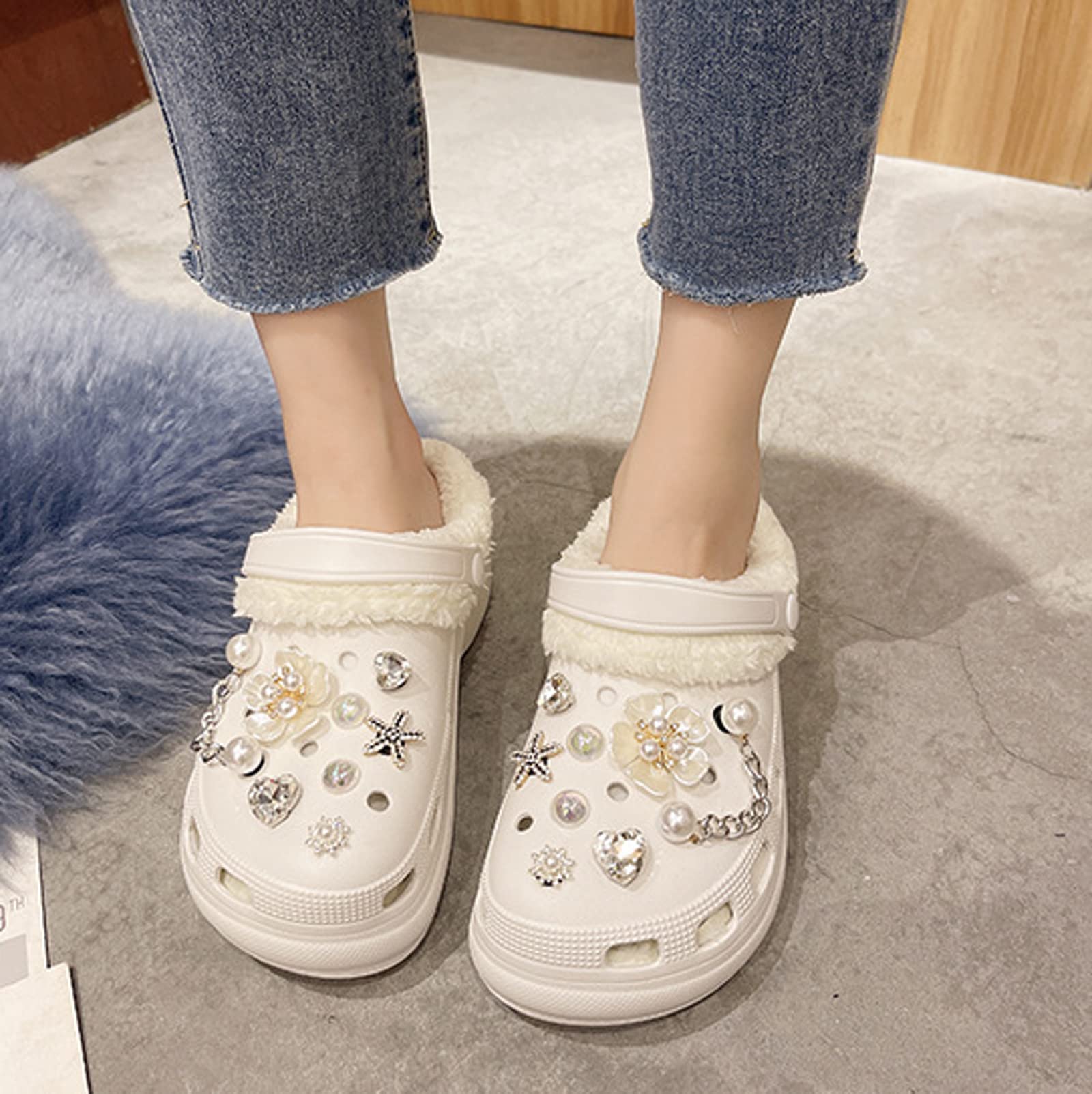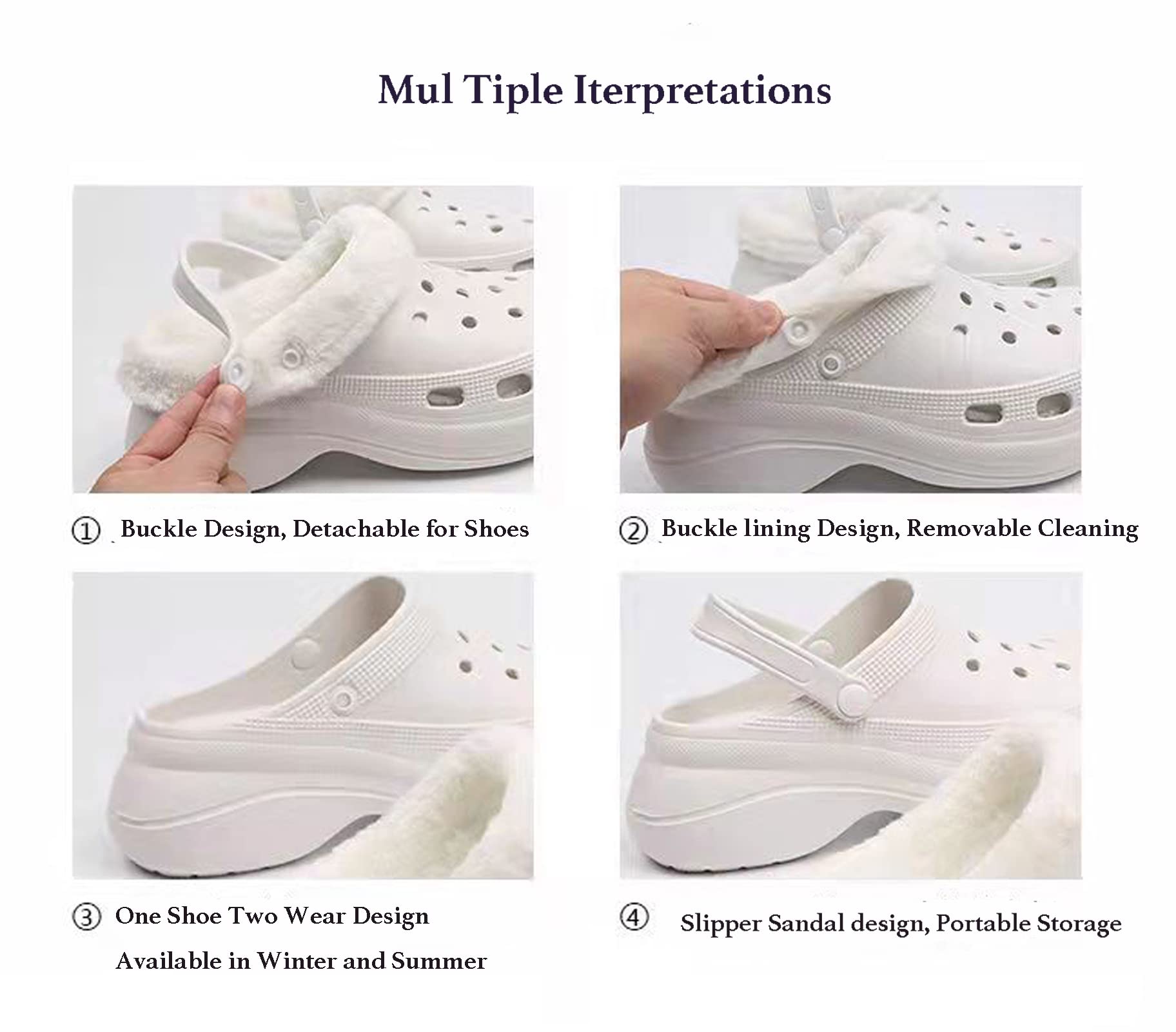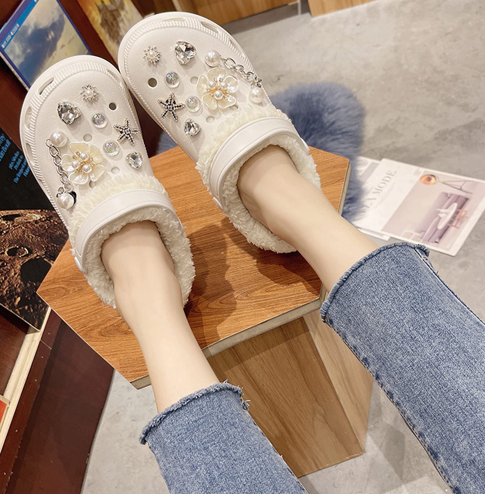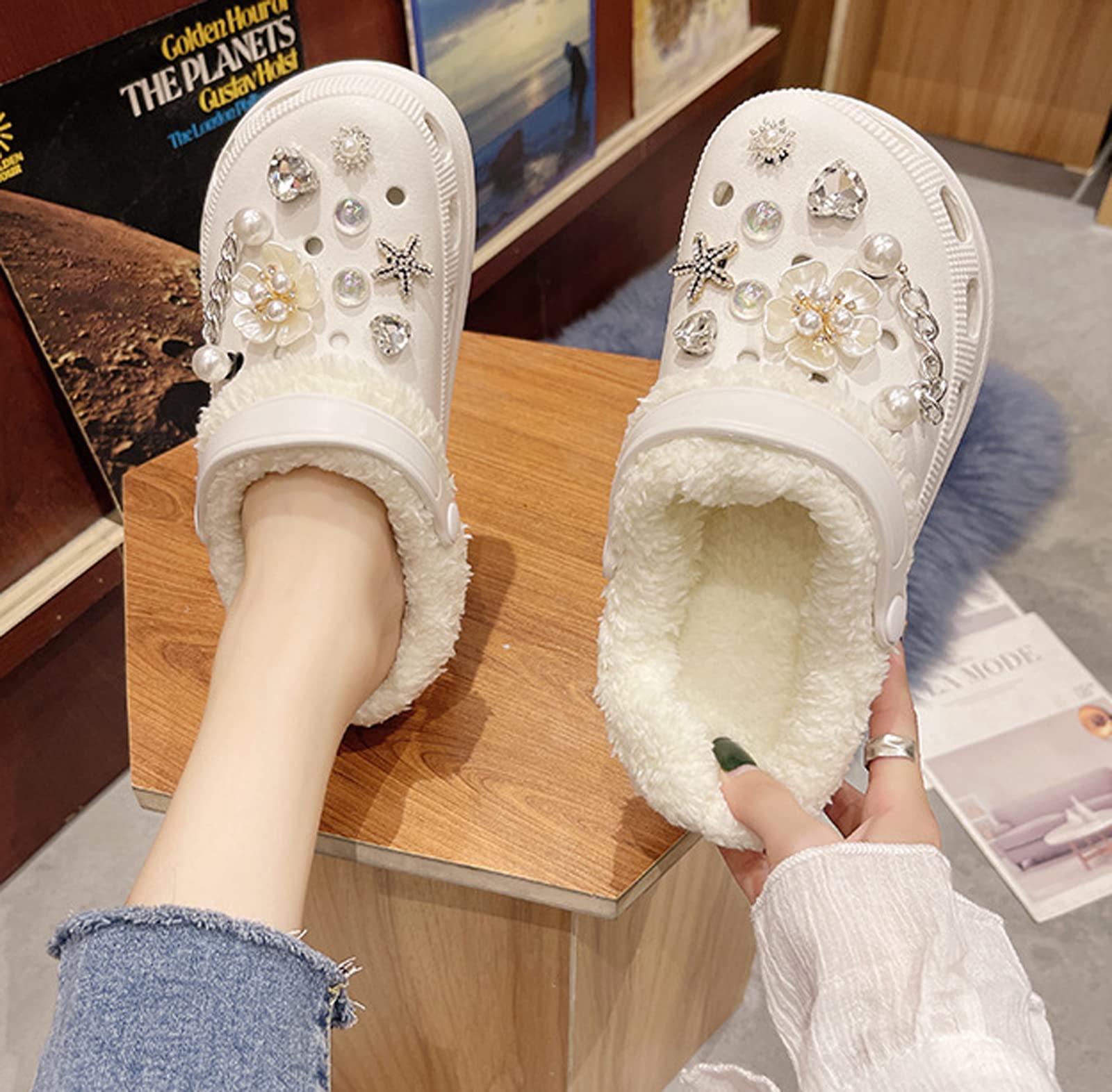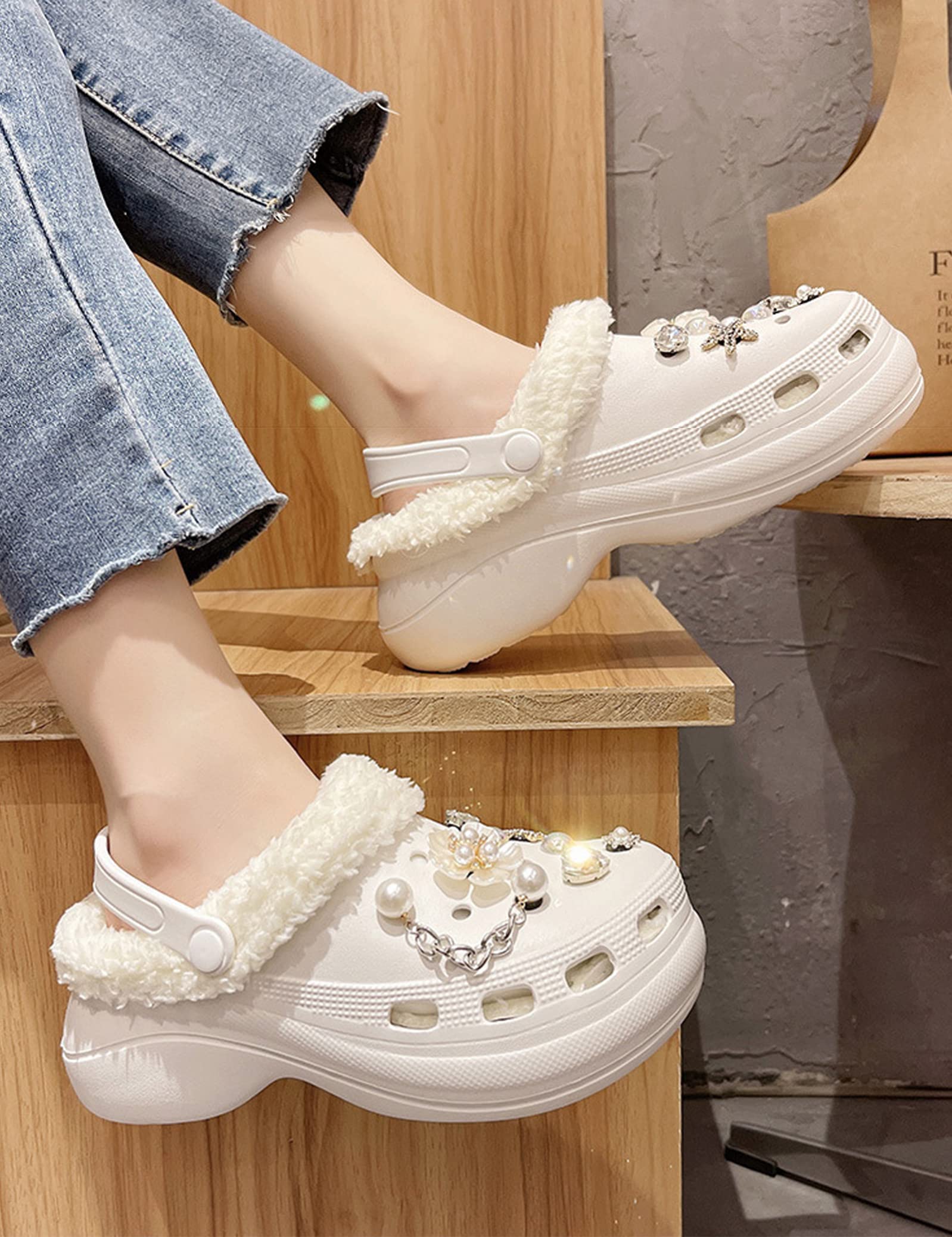 Crystal High Increase Plush Lining Memory Foam Cotton Thick Sole Clog slippers 8