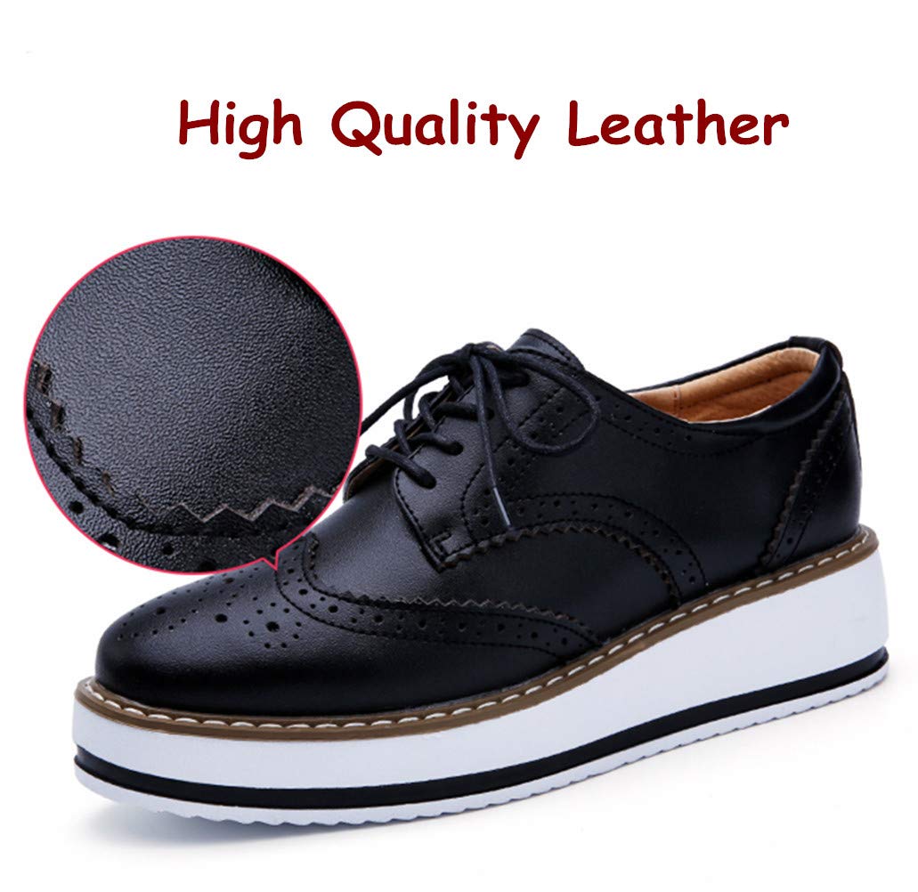 DADAWEN Women's Platform Lace-Up Wingtips Square Toe Oxfords Shoes 5