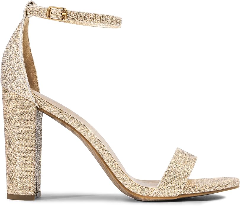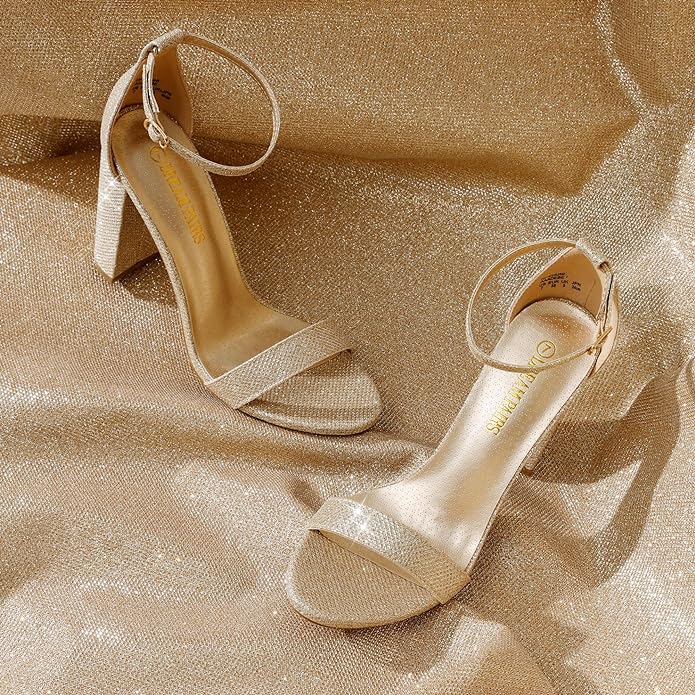 Dream Pairs Hi-Chunk Gold Ankle Strap Open Toe Block High Heeled Sandals