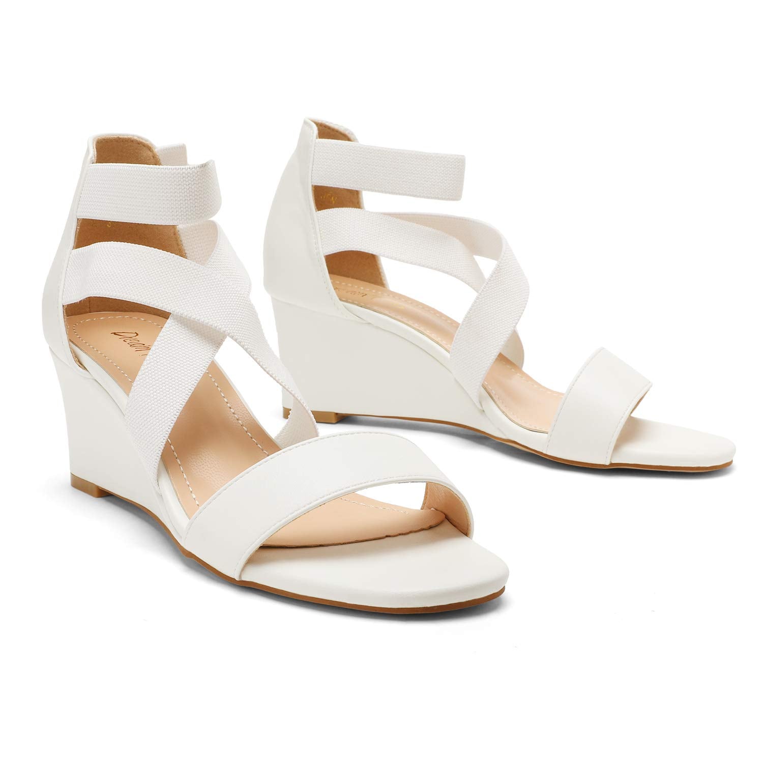 Dream Pairs Innis-1 White Fashion Open Toe Elastic Ankle Strap Low Wedge Sandals
