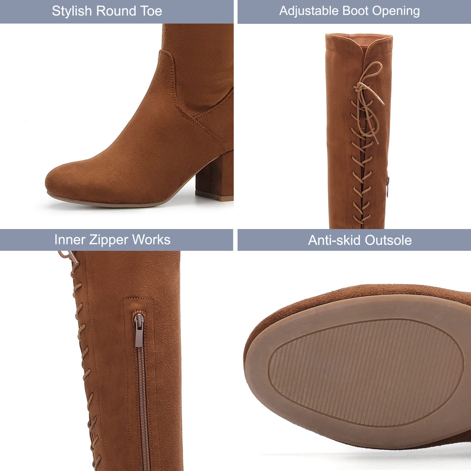 - The boot back is designed with full lace, which is convenient for fitting different sizes of calves